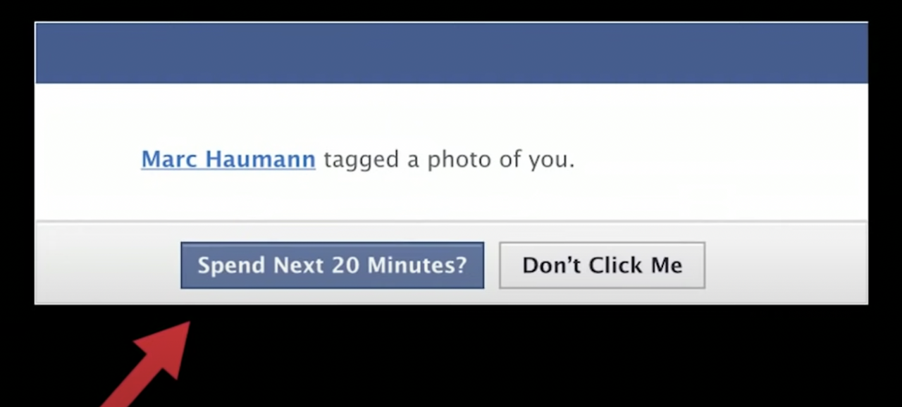 4. 이걸 들어갈 수 밖에 없는 이유는 원시인류 바이러스 (맨 아래 링크)에 의해 모든 인간은 타인의 ‘평판’에 민감 할 수 밖에 없는 심리를 지니고 있어서다. 저렇게 나를 태그했다는데 “내가 못생긴 얼굴로 찍혔으면 어떻게 하지?” , “누군가 댓글로 내 욕을 써놓았으면 어떻게하지?”라는 평판 걱정에 하던 일을 멈추고 당장 들어갈 수 밖에 없도록 인터넷 기업이 설계해놓았다는 것이다.