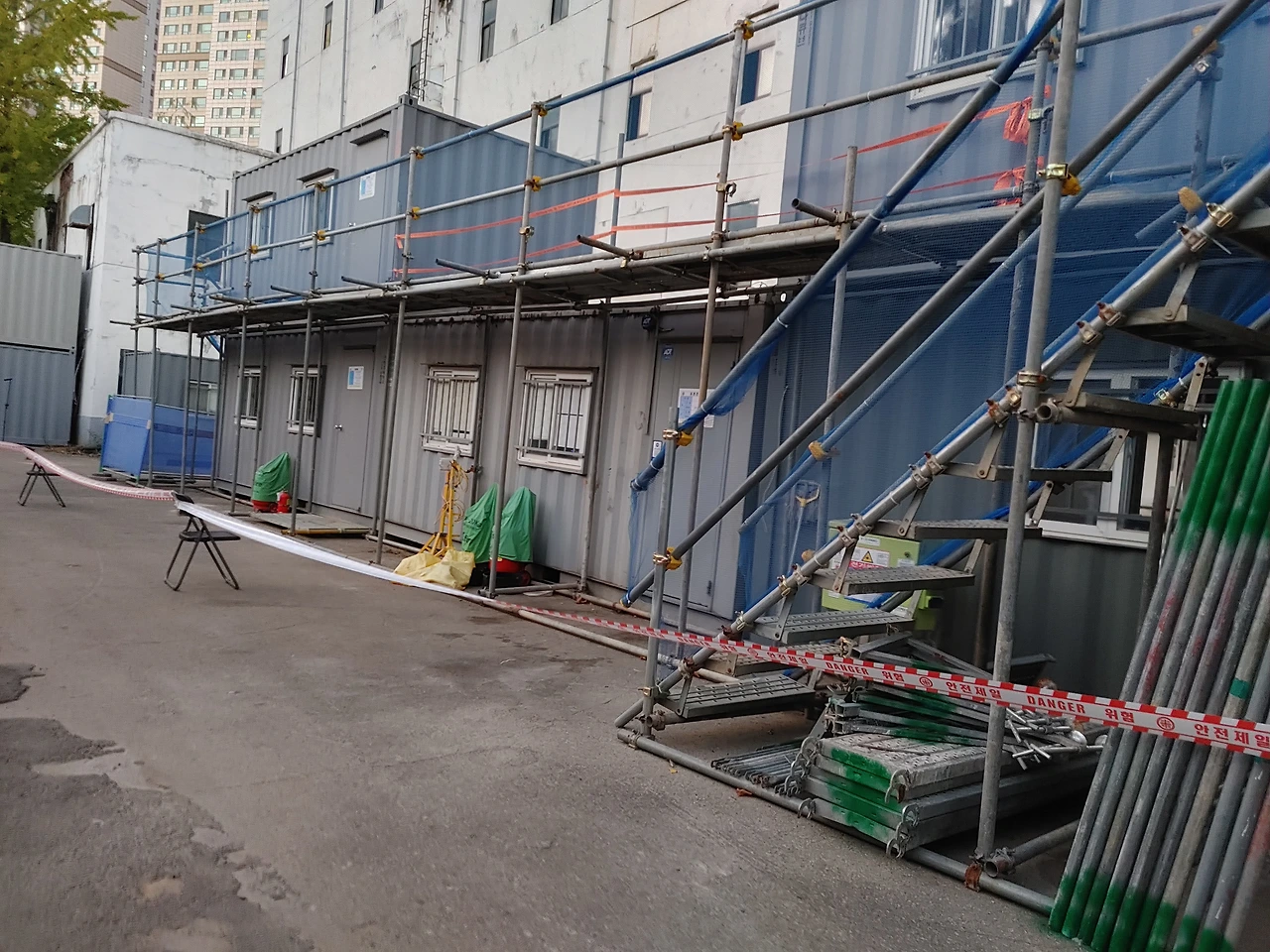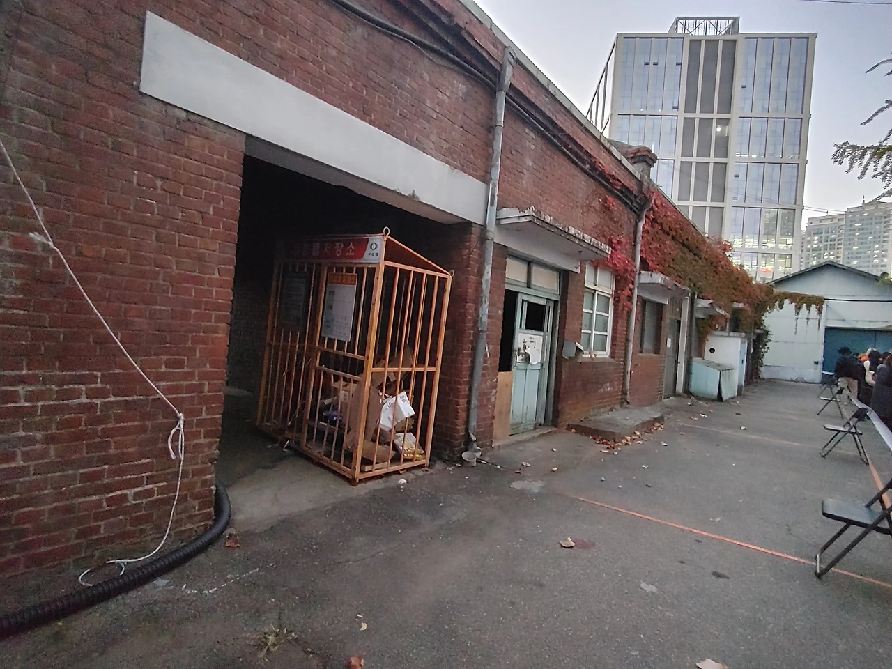 그렇다고 이 공연의 주제가 빛과 어둠이라고 하기엔 주저된다. 몇몇 인상적인 장면이 없었던 것은 아니지만. 예를 들면 내가 앉은 자리에서 바닥을 사선으로 가르며 빛이 비출 때 퍼포머와 일렬로 늘어선 형체가 보이는 거다. 뭐지? 웅크린 사람? 너무 작은데, 오브제를 놓았나? 퍼포머가 움직이고 빛이 방향을 틀면서 창고 기둥의 하단이었다는 것이 드러난다. 분명 거기에 기둥이 있었다는 것을 알고 있었지만 빛과 어둠이 만들어내는 흥미로운 장면이었다. 그러나 그런 몇몇 장면을 제외하면, 마지막 포그와 문틈의 빛으로 만들어지는 빛과 안개의 벽이라든가 등등, 육중한 어둠과 어둠의 무게를 진동으로 다시 반복하는 소리가 이 퍼포먼스를 차지하고 있다.