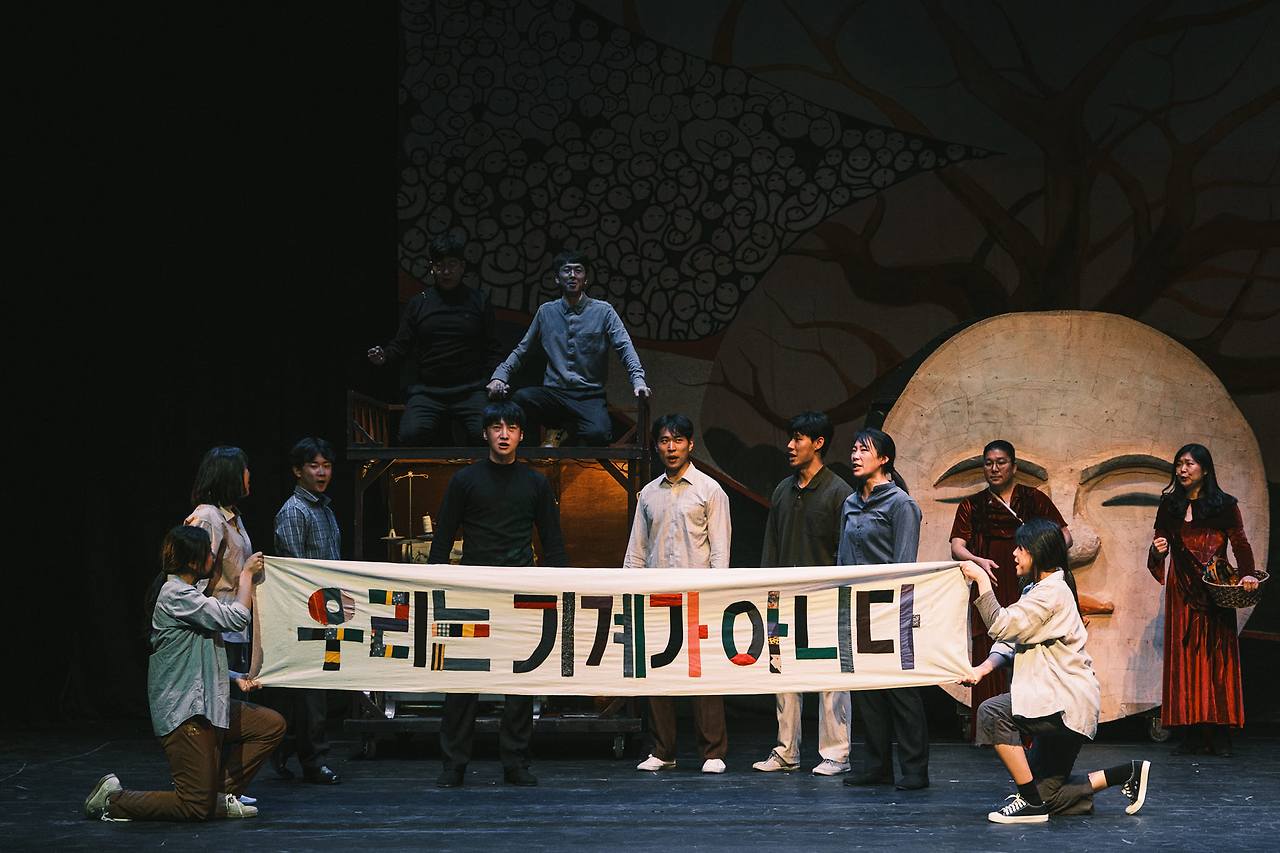 평전을 비롯하여 영화, 만화, 애니메이션 등 전태일의 삶과 죽음을 다루는 대중매체가 지속적으로 발표되면서 전태일에 대한 연극 제작은 좀 다른 고민에 놓이는 것 같다. 물론 장르와 매체에 따라 그리고 참여하는 창작자들에 따라 새롭게 해석되는 이야기들이 있겠지만, 대중매체의 파급력에 비할 수 없는 연극은 ‘지금’ ‘여기’에 더욱 천착하게 된다. 즉 50년이라는 시간의 간극을 넘어 그의 삶과 죽음이 ‘지금’ ‘여기’에 어떻게 되불려 들여져야 하는가에 대한 고민이 깊다.