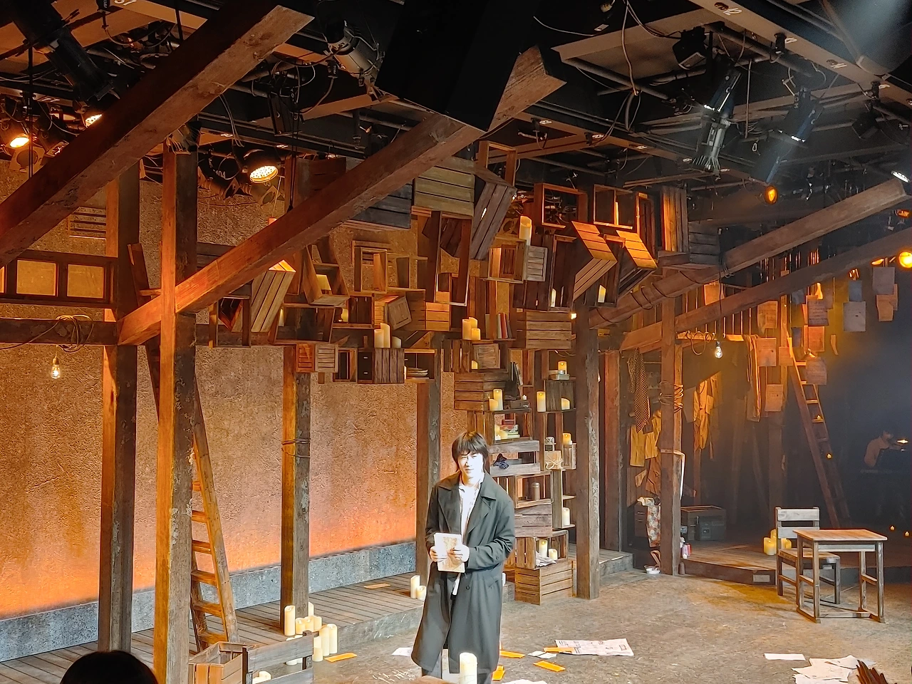 음악극 <태일>은 창작그룹 목소리프로젝트 세 창작자들의 작업으로 시작되고 완성되었다. 즉 세 창작자의 협업프로젝트다. 2017년 트라이아웃 공연에 이어 2018년 우란문화재단, 2019년 전태일기념관 개관공연을 거쳤다. 음악극 <태일>은 성마저도 제하고 이름만 남겨둔 제목처럼 인물에 집중한다. 오직 두 명의 배우만이 무대에 선다. 창작자들은 ‘태일의 목소리’ ‘태일 외 목소리’로 인물을 나누었지만, 인물이 둘인 것은 아니다. 한 명의 배우가 전태일을, 다른 한 배우가 전태일 외 모든 역할을 연기한다. 태일과 태일 외 역을 남배우와 여배우가 나누어 맡았다. 이러한 설정이 자칫 드라마를 협소하게 하는 것은 아닌가 하는 우려도 있었다. 전태일의 삶은 전쟁 직후 대구와 서울 도시 빈민층의 삶과 청계천 평화시장 노동현실을 가로지르는 것이 아닌가. 60년대 빈곤한 삶의 풍광처럼 낡은 나무상자를 잇대어 만든 무대는 변화 없이 세워져 있고 시대를 해설하는 영상도 등장하지 않는다.