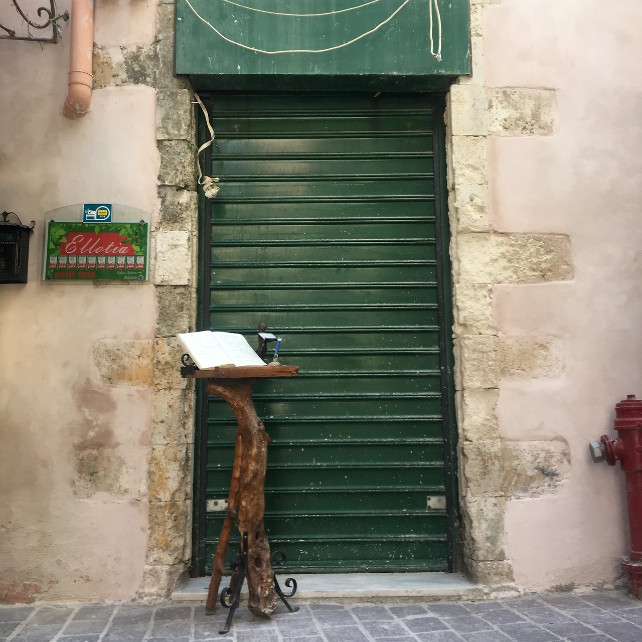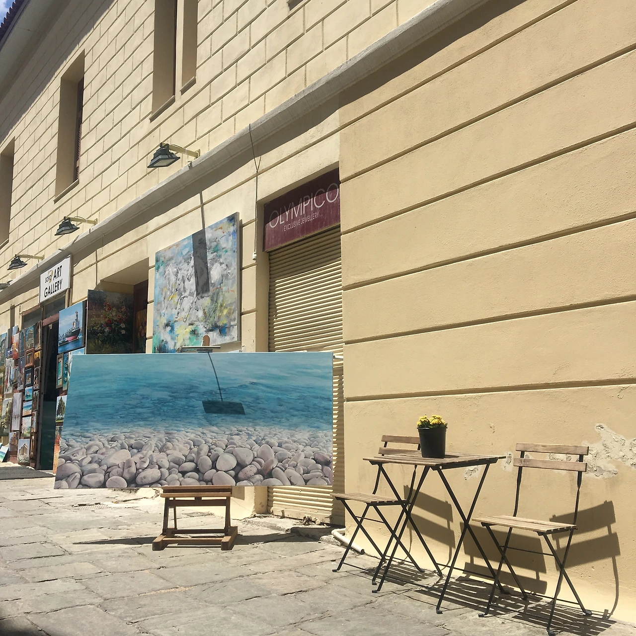 아침에 물을 머금은 차가운 공기. 플라카 지구에 잘 정비된 보행자용 도로는 지난밤 동안 열기로부터 한숨 돌린 도시의 흔적이 곳곳에 맺혀있었다. 언덕 위에 파르테논 신전의 오른쪽 기둥 윗부분이 햇살에 반짝이고 있었다. 한 걸음 한 걸음 발이 땅에 닿는 것을 느끼며 천천히 걸었다. 바람 한 점 없는 구시가지의 공기에는 어울리지 않는 무엇인가, 이른 새벽의 공기에는 없어야 할 이질적인 무엇이 포함되어있었지만, 그게 무엇인지 확신할 수 없었다. 전날에는 시끄러운 식당 호객꾼들과 관광객들로 북적이던 곳에 오늘 또 다른 하루의 사람들을 기다리는 식당 테이블과 의자가 밧줄에 묶여있다. 테이블 위에 놓인 담배 재떨이 안에 있는 몇 개의 담배는 지난밤의 호젓한 사내들의 외로움이 담겨있었다.