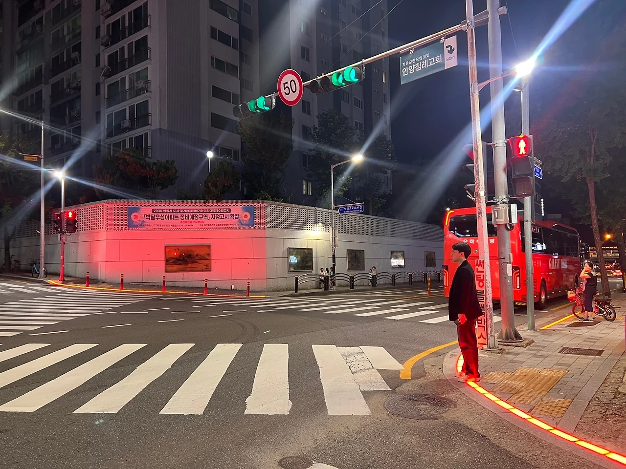 밤에 두 곳 다 현장을 방문했습니다. 혹시나 너무 밝다고 신고가 들어올지 걱정될 정도로 유난히 빨간불과 초록불이 밝아 보였습니다. 3년 동안 요청한 사업이 이제야 완료되어 속이 시원하기도 하고 더 안전한 보행 환경이 조성되었다는 생각에 약간의 뿌듯함도 들었습니다.
