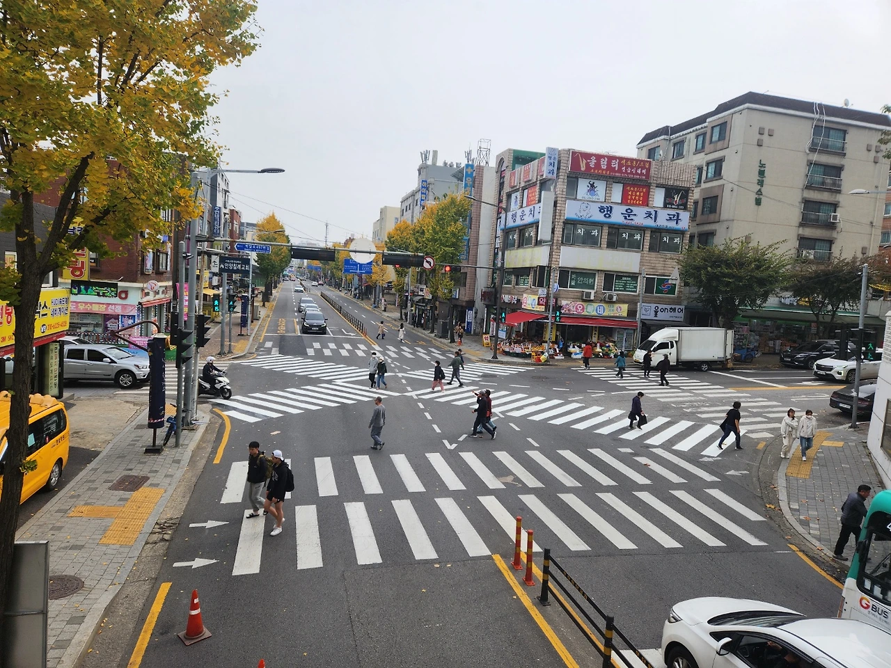 대각선 횡단보도가 설치 되기 전후 사진입니다