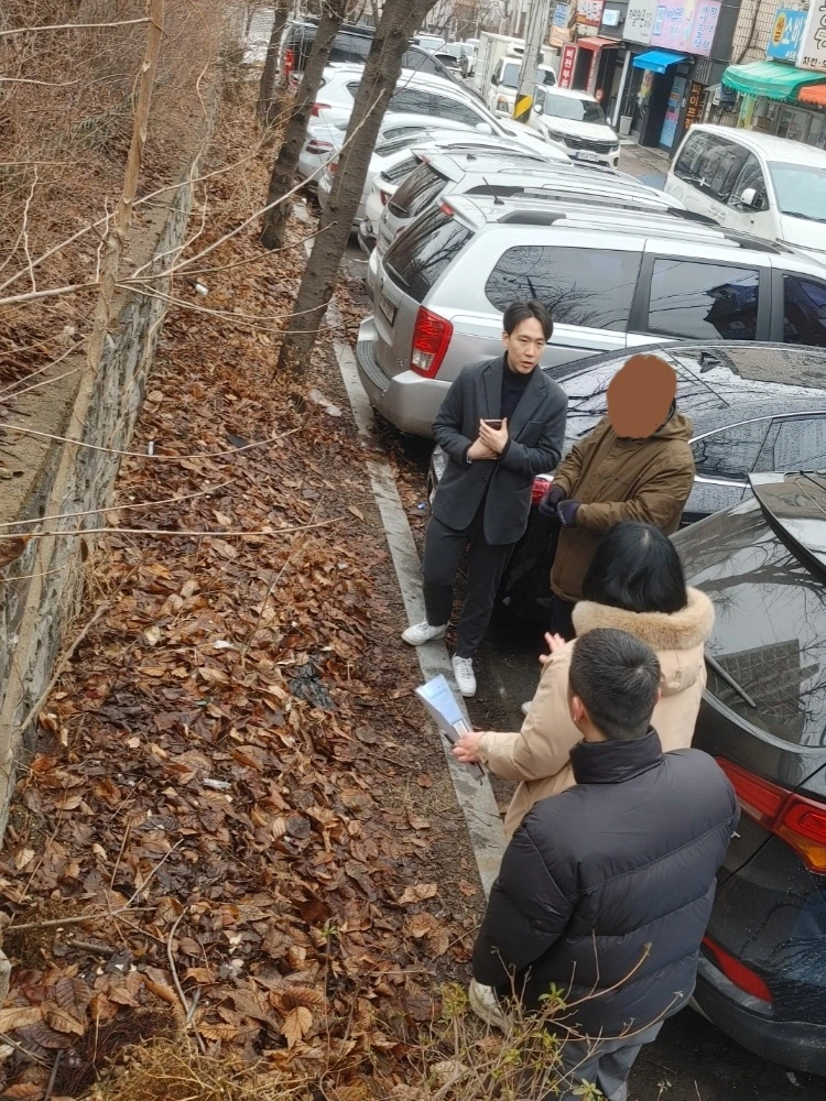 설 연휴가 시작되기 전, 박달어린이공원 아이누리 놀이터 인근 주차 문제 해결을 위해 공원관리과 직원과 현장을 방문했습니다. 지목은 공원인데 어느 때인가 주차선을 긋고 현재는 주차 공간으로 활용 중인 공터가 있습니다. 박달1동은 골목이 좁고, 가구수는 많아 주차 공간이 늘 부족합니다. 해당 구간도 주차 공간을 더 확보해달라는 요청이 있었습니다.
