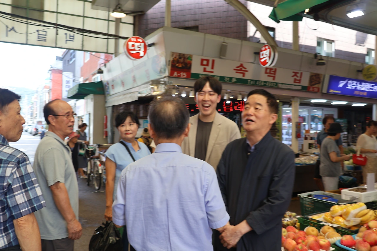 지난주 일요일 강득구 국회의원님과 윤경숙 안양시의원님과 함께 박달시장에 다녀왔습니다. 약간 흔들린 사진이지만 웃는 모습이 맘에 들어 공유합니다.