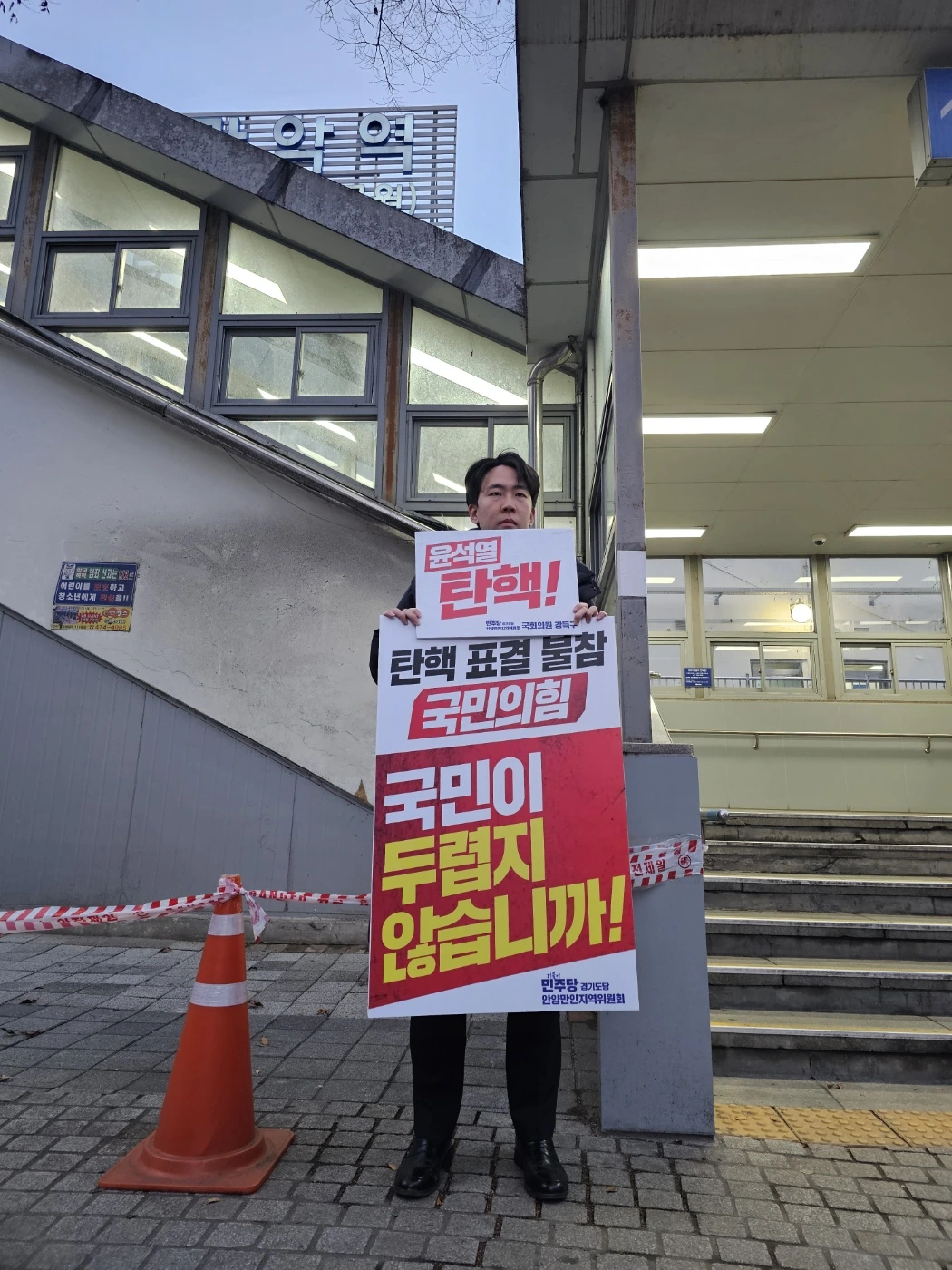 2주 전 탄핵안이 부결되며 한 주간 안양에서도 많은 활동이 있었습니다. 저 역시 역과 사거리 등에서 아침에 일인 피켓 시위를 시작했었고, 목요일에는 안양역 그리고 금요일에는 범계역에서 퇴진 집회를 열기도 했습니다.