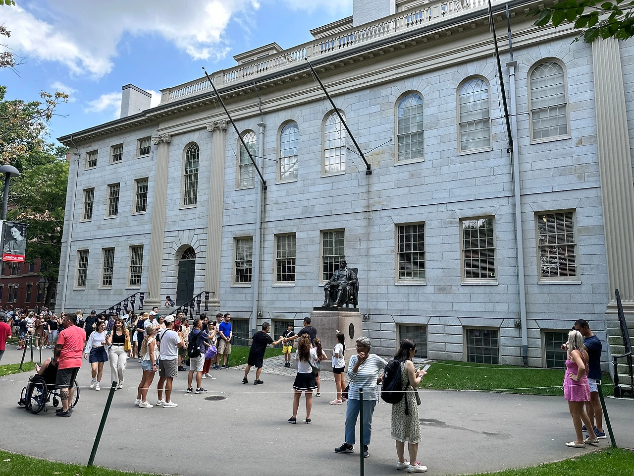 하버드에 도착하니 저 멀리에 어마어마한 줄이 보였다. 그것은 바로 설립자 동상의 발을 만지고 사진을 찍기 위한 줄이었다. 나도 정문에 들어가자마자 바로 줄에 섰다. 웃긴 것은 바로 이곳에서 한국 사람들을 가장 많이 만났다는 것이었다. 내 앞에 선 사람, 뒤에 선 사람 모두 당연히 한국 사람이었고, 그 앞 줄 사람들도 한국 사람이었다. 그리고 귀에 선명하게 들려오는 한국어들. 우연일 수도 있겠지만 줄에는 아시아 사람들이 많았고, 아시아 사람들 중에서도 한국인들이 가장 많았다.