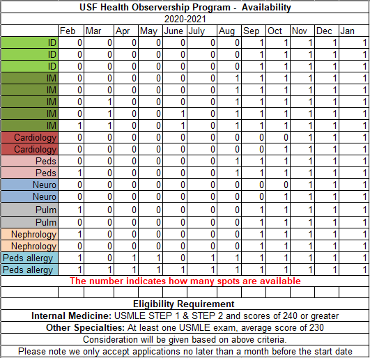 사이트에서 인적사항을 기재하고 Step 1 또는 Step 2 시험 결과만 업로드하면 됩니다. Step 1만으로도 내과 각 분과, 소아과, 신경과 지원이 가능합니다. 특히 USF는 한국 의사들 사이에서 평판이 좋은 편이고, 이전에 다녀오신 선생님들의 경험담을 쉽게 들을 수 있다는 것도 장점입니다.