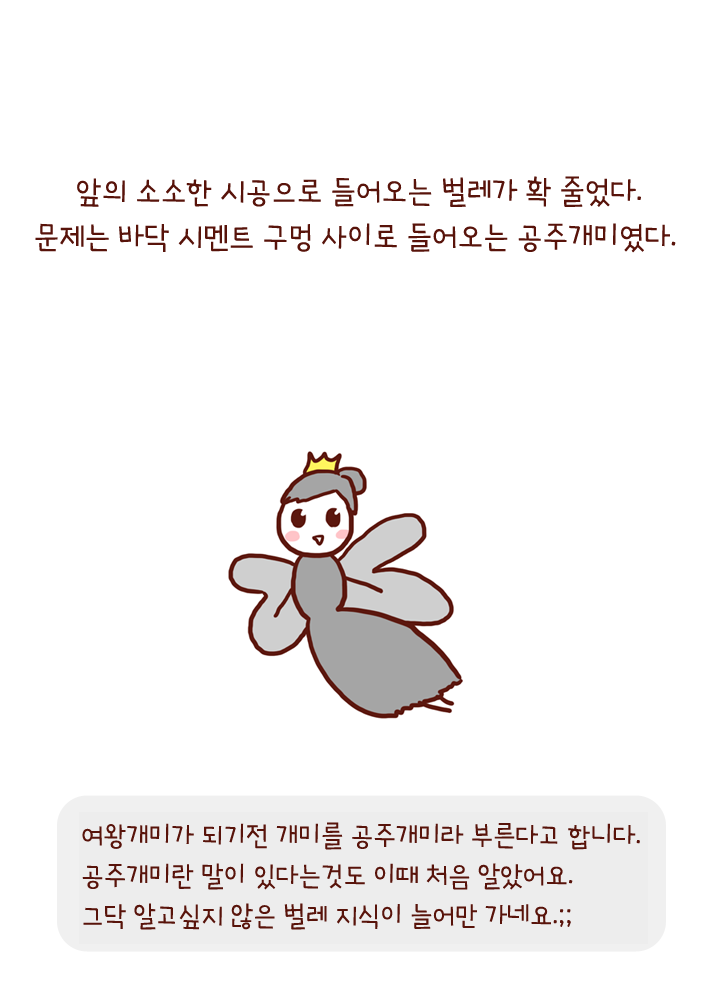최근에는 그래도 초반보다 벌레를 잘 잡게 되었는데, 기쁜 소식은 벌레 잡을 일이 없다는 겁니다. 으하하하! ㅠㅠ 너무 기뻐요! 해충박멸 서비스를 이용해도 밖에서 들어오는 벌레가 있기때문에 100% 벌레 없이 살순 없답니다. 하지만 오늘 소개해드린 몇가지 작은 시공만해도 훨씬 좋아지니 너무 겁먹지는 마세요. :)