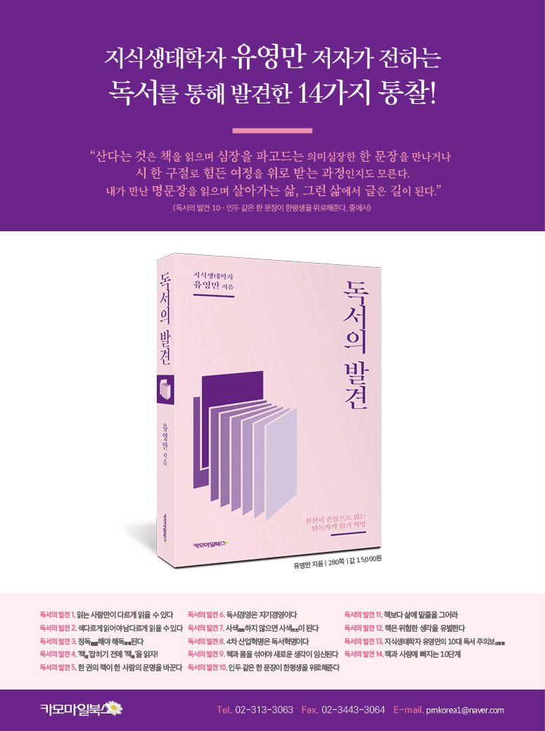 손에 잡힌 책은 이제 쉽게 빠져나가지 못한다. 제 목에 걸린 제목과 목을 차 버릴 정도의 목차가 주는 메시지에 빠져들기 시작한다. 제목은 책을 한 마디로 요약한 문장이다. 한 마디로 한 사람의 한 평생을 좌우할 정도로 마력이 있고 매력도 있으며 파괴력도 대단하다. 아무리 좋은 내용을 품고 있어도 그걸 한 마디로 독자를 유혹하지 않으면 독자는 책으로 넘어가지 않는다. 독자는 이제 본문을 여기저기 뒤적거리면서 다시 표지를 보고 제목과 맞춰보면서 누가 이런 책을 썼는지 저자 소개를 읽어본다. 저자가 저 자가 아니라는 생각, 이런 책을 쓴 저자의 삶이 범상치 않음에 놀라면서 목차를 다시 순식간에 훑어 읽은 다음 프롤로그를 거들떠보기 시작한다. 이미 독자는 저자의 책의 세계로 빠지기 시작한다. 한 번 빠지면 다시 빠져나가기 어렵다. 본래 프롤로그는 독자가 책을 사지 않으면 안 되는 이유를 논리적으로 설명하지 않고 감성적으로 설득하는 내용을 품고 있다. 독자의 마음을 빼앗기 위해 맨 앞애 배치한 글이 프롤로그다. 프롤로그까지 읽은 독자는 책 전체에 대한 이미지를 상상하면서 저자가 이끌고 가는 미지의 세계로 가는 여행에 동행하기 시작한다. 돌아갈 수 없는 책의 궁지에 빠진 것이다. 이제 독자는 저자의 메시지로 마사지를 당하면서 몸을 내맡기기 시작한다. 이 즐거운 읽기의 쾌락을 혼자 조용히 즐기기 위해 독자는 결단을 내리기 일보직전이다. 바로 구매가 결정되기 바로 직전이다. 흐릿했던 저자나 책의 이미지가 밝혀지지 않은 미지의 세계로 나를 이끌고 간다.