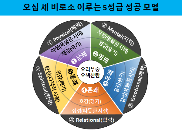 나이 들어서 통념을 먹고 푸념하면서 체념하기보다 지금까지와는 다른 경이로운 세계를 심장 뛰는 마음으로 맞이하려면 어떤 노력이 필요할까? 지금까지 남의 인생을 살기 위해 남이 정해놓은 규칙과 법에 맞춰 살아온 누추한 삶은 우선 버려야 한다. 내 삶의 주인은 나다. 내가 나답게 살아가는 삶의 주인공이다. 전혀 관계가 없다고 생각되는 이질적인 두 가지를 엮어내는 유추(類推)를 통해 경탄에 마지않는 경이로운 기적이 일상이 되는 그런 삶을 살아갈 가능성을 찾아가야 한다. 지금까지 사회가 요구하고 조직이 원하는 사람, 집의 가장에게 덧씌워진 의무 이행자로 살아왔다. 지금부터는 물건을 사기 위해 돈을 저축하는 사람이 아니라 추억을 만들기 위해 경험을 사는 사람으로 살아가야 한다. 이런 삶을 살아가기 위해 갖춰야 할 5가지 조건을 이야기한다. 일명 오성급 성공 모델이다. 여기에는 체력으로 단련하는 야성, 지능을 능가하는 지성, 감동과 감탄의 원천인 감성, 심장 뛰는 비전의 언어를 만드는 탄성, 마지막으로 믿을만한 인간관계를 만드는 정성이 포함된다.