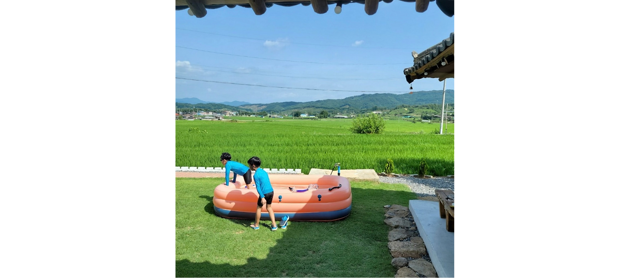 잔디마당과 수돗가가 있기 때문에 간이 수영장이 있으면 어린이들과 같이 오는 손님들의 반응이 좋을 것 같았습니다. 가격이 너무 비싸면 결정을 미룰수도 있었겠지만 괜찮아보이는 모델의 가격이 10만원 미만이니 충분히 도전해볼만 했습니다.