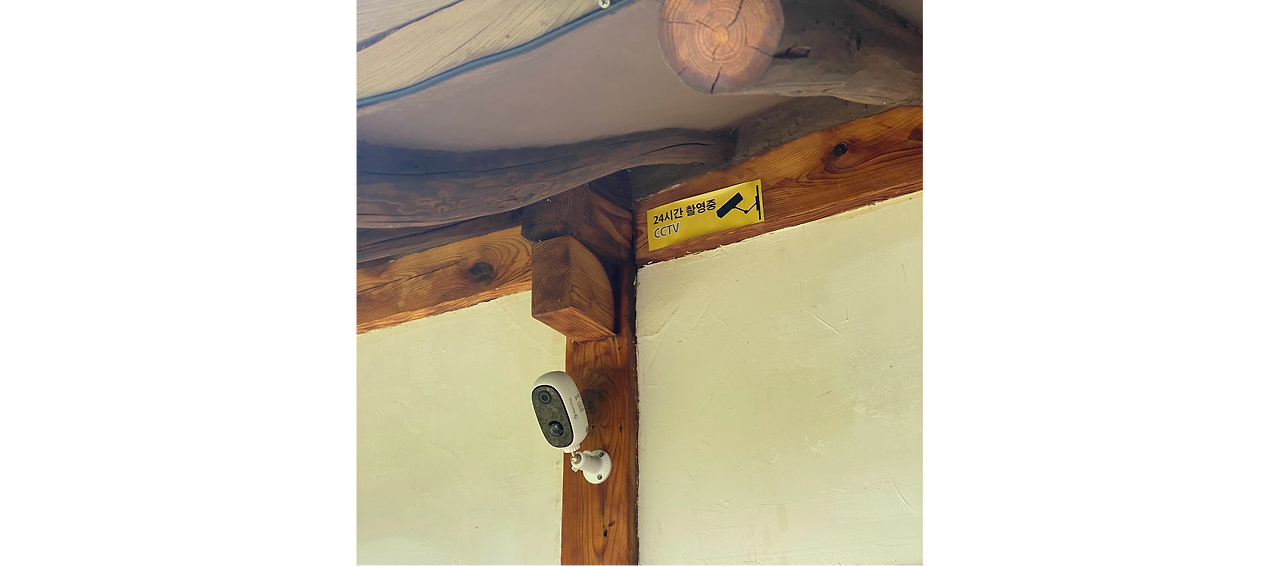 제가 손님들을 감시하는 목적이 아니라 손님들이 보호받고 있다는 느낌을 주기 위해서입니다. 요즘에는 도시의 곳곳에 CCTV가 많은데 사람들은 더이상 카메라를 나를 감시하고 있다고 생각하지 않는 것 같습니다. 이제는 없어서는 안될 너무 당연히 있어야 하는 존재가 된 것이죠. 그래서 잘 보이는 곳에 CCTV를 설치했고 상시 녹화중이라고 써붙여두었습니다. 사람들이 숙소를 드나드는 모습과 야외 잔디마당, 불멍하는 화로 주변이 보일 수 있는 각도로 한 대를 설치했고 지금까지는 정말 만족하고 있습니다.