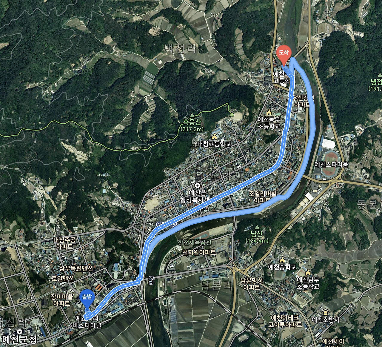 자전거 이야기로 시작한 이유는 다른데 있습니다. 자전거를 타보니 그제서야 작은 도시에서 살아가는 장점이 더욱 크게 느껴졌습니다. 지금 제가 살고있는 예천은 여느 다른 도시보다 작은 편입니다. 지도로 빠른길찾기를 해보니 읍내라고 할수있는 남쪽 끝 버스터미널에서 북쪽 끝에 있는 고등학교까지 자전거로 10분이 걸린다고 나오네요. 이렇게 작은 도시이기때문에 저는 처음 이 곳으로 이사를 오게됐을 때 자연스럽게 콤팩트시티를 떠올렸습니다. 이렇게 작은 도시라면 아무도 의도하진 않았지만 자연스럽게 콤팩트시티라고 할 수 있지않을까.
