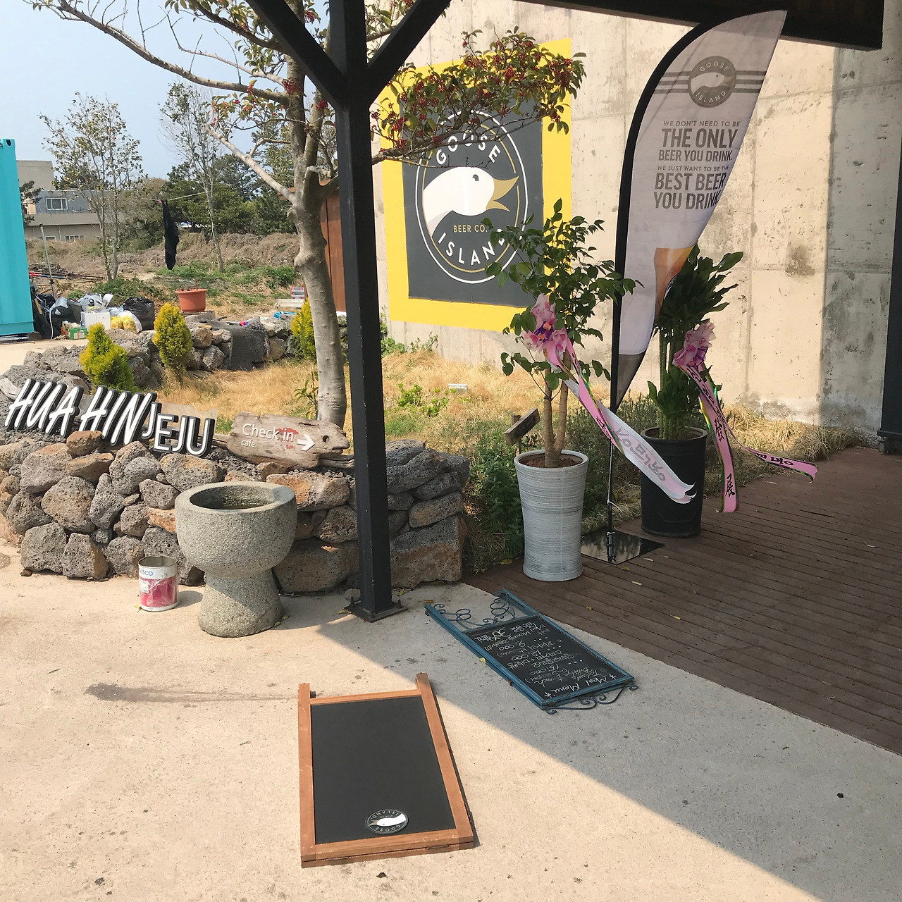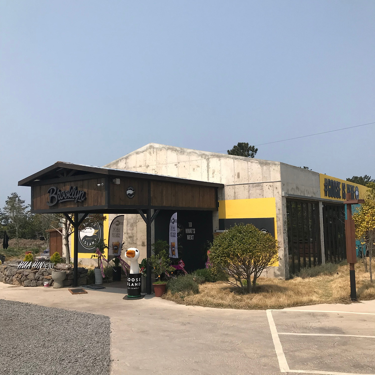 바다를 보며 신나게 걷다가 한시간쯤 되었을 때 잠시 쉬어가고 싶은 생각이 들었는데 눈 앞에 낯익은 거위로고가 보였습니다. 맥주를 좋아하는 사람이라면 한번쯤 들어봤고 마셔봤을 구스아일랜드가 바로 앞에 있었는데요. 여기서 딱 한잔만 하고 쉬어가면 좋겠어서 들어갔는데 100미터쯤 갔을까요? 입구에 다다르니 간판이 강풍에 쓰러져있고 문이 굳게 잠겨져있었습니다. 무척 아쉬웠습니다. 하지만 맥주 한잔을 마셨으면 대낮에 풍경을 즐기지도 못하고 벌겋게 달아오른 얼굴과 함께 반쯤 취해서 남은 도보여행이 아마 힘들어졌을겁니다.