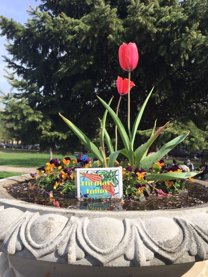 내 예상과 달리 할아버지는 긴 호스를 들고 공원에 다시 나타났다. 뭐지, 하면서 상황을 보고 있는데 할아버지가 공원에 있는 꽃과 나무에 하나씩 물을 주기 시작했다. 내가 완벽한 봄이라며 만끽한 장면은 할아버지의 손에서 나왔던 걸까. 나 자신이 너무 창피하고 부끄러웠다. 왜 이렇게 함부로 사람을 판단하는지. 그러지 말자고 살면서 수백 번은 다짐한 거 같은데 또 똑같은 짓을 하고 있었다. 그림 그리는 걸 멈추고 할아버지를 바라보았다. 할아버지는 물을 잔뜩 머금은 튤립을 가리키며 "How beautiful!"이라고 말했다. 튤립이 참 아름답지 않냐고 말하는 그에게 나는 "Yeah, because of you"라고 대답했다. 당신 덕분에요, 라는 내 대답을 들은 할아버지는 쑥스러운 듯 웃었다.