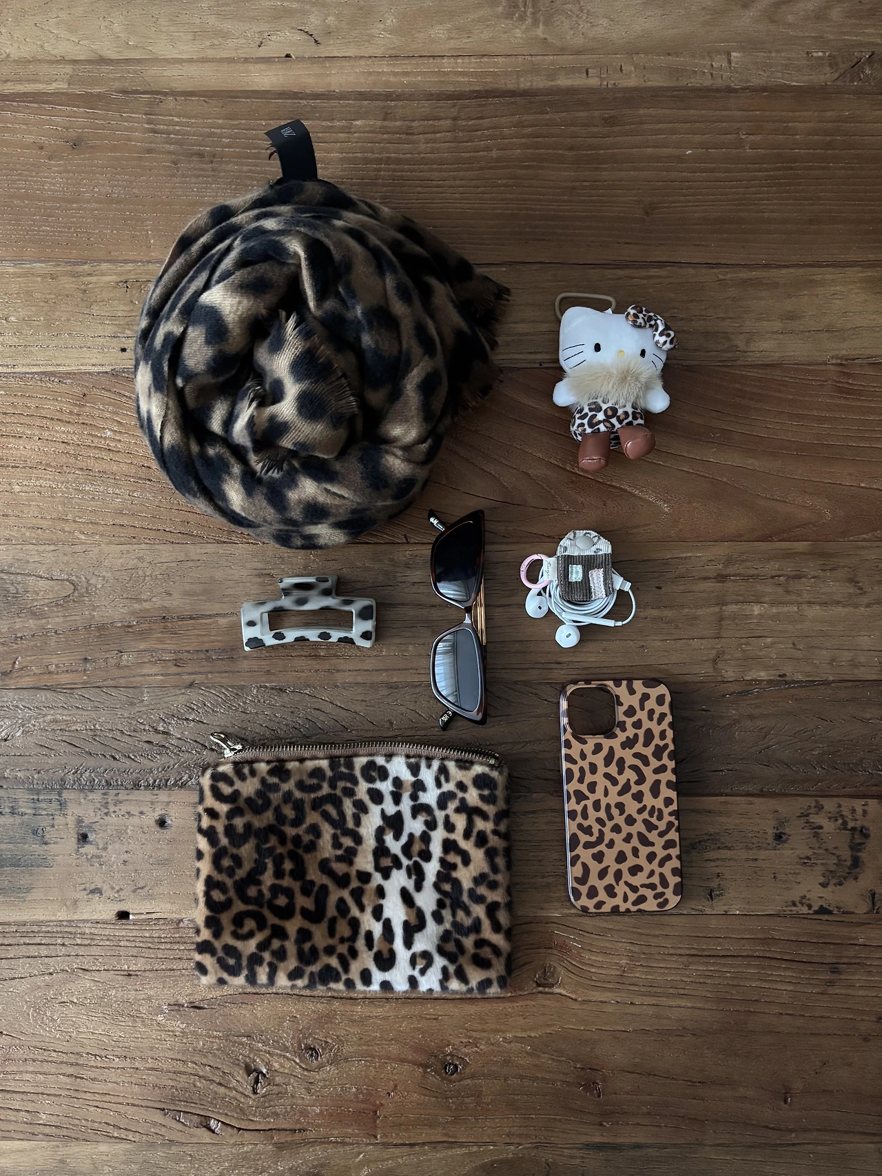 몇 년 전 친구에게 선물 받은 호피 파우치부터 휴대폰 케이스, 선글라스, 머플러, 집게핀까지 한 곳에 모아보니 제법 그럴듯한 컬렉션이 됐다. 좋아해서 하나둘 쌓이다 보니 자연스럽게 생긴 결과물이었다.