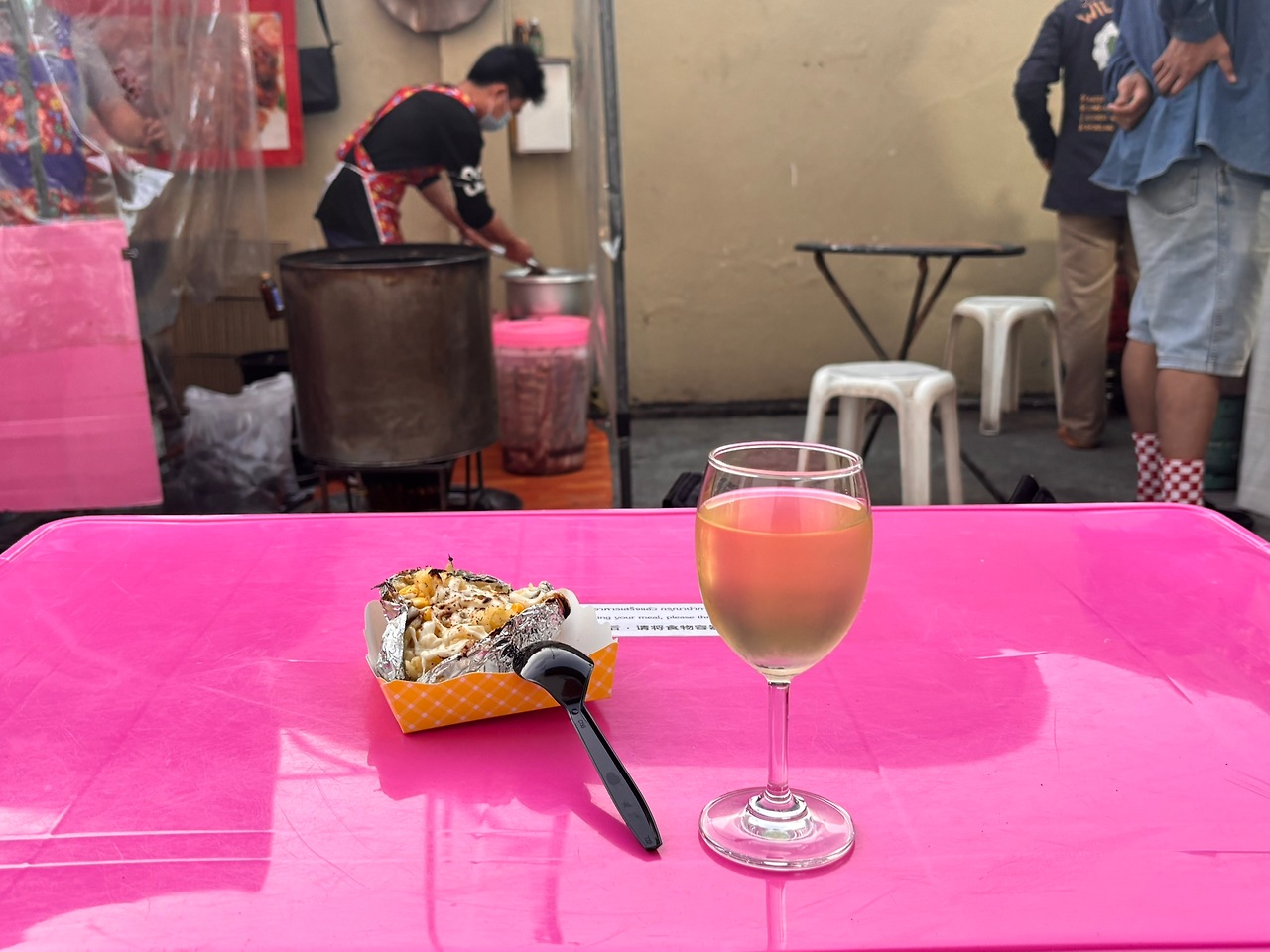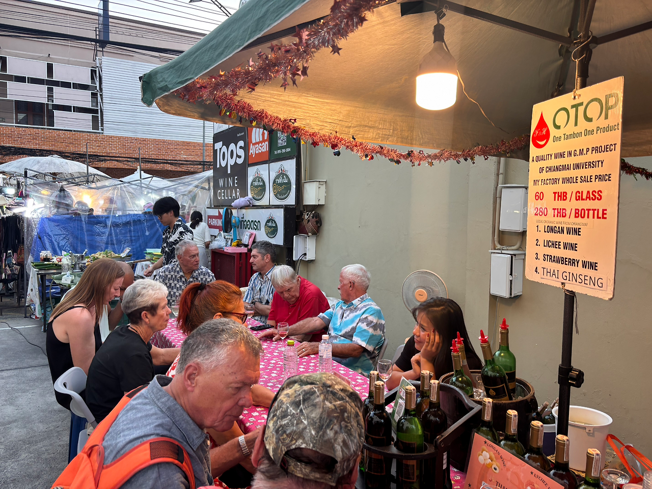우리 부부는 2년 전 치앙마이 한 달 살기 중 선데이마켓을 찾았다가, 우연히 한 골목길에서 노천 와인바를 발견했다. 플라스틱 테이블과 의자 몇 개를 내놓은, 소박한 공간이었다. 직접 만든 와인을 판매하던 그곳에는 한국에서는 쉽게 볼 수 없는 리치, 딸기 같은 과일 와인들이 있었다. 습도가 높아 가만히 있어도 땀이 흐르던 5월이었지만, 분위기에 이끌려 자리를 잡고 앉아 와인을 주문했다. 함께 먹을 음식은 주변 노점에서 사 와도 되는 곳이었다.