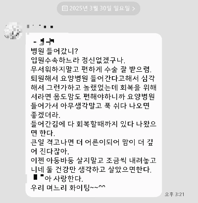 수술 전날, 어머니께서 보내신 메시지를 읽고 눈물이 멈추질 않았는데..