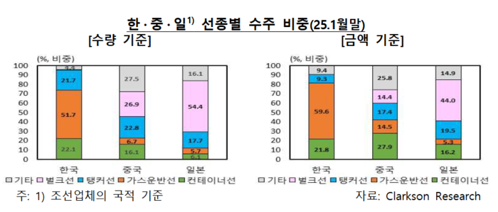 컨테이너선 발주량이 한국 조선업의 성과에 꽤나 큰 부분을 차지하고 있다는 뜻이다.