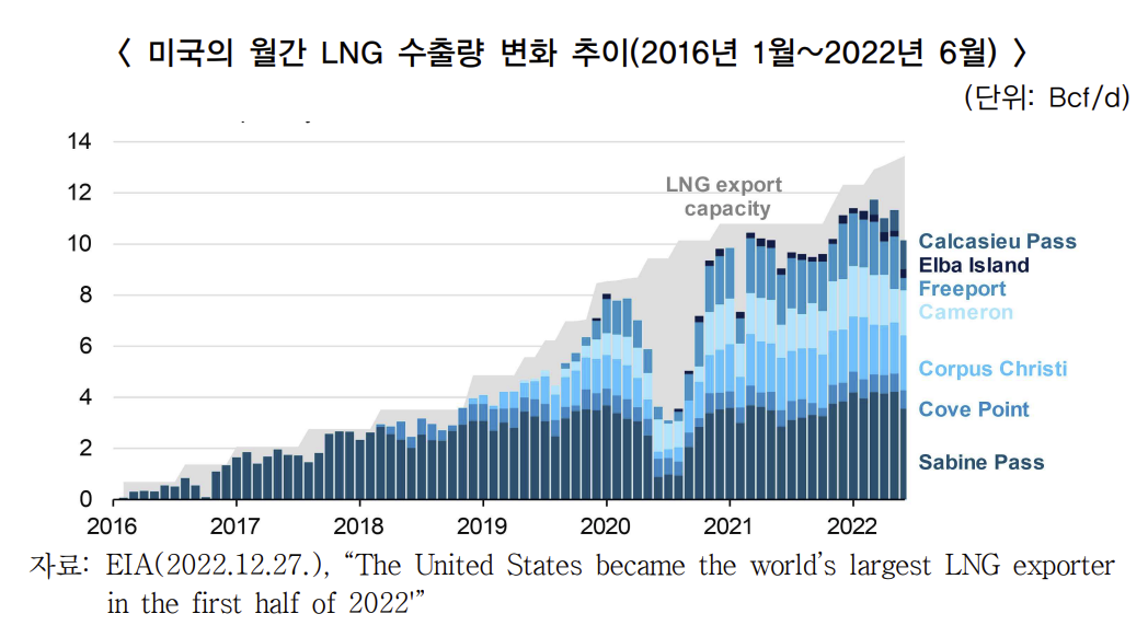 보시다시피 천연가스는 미국의 주요 수출 품목이며, 수출량 또한 꾸준히 증가하고 있다.