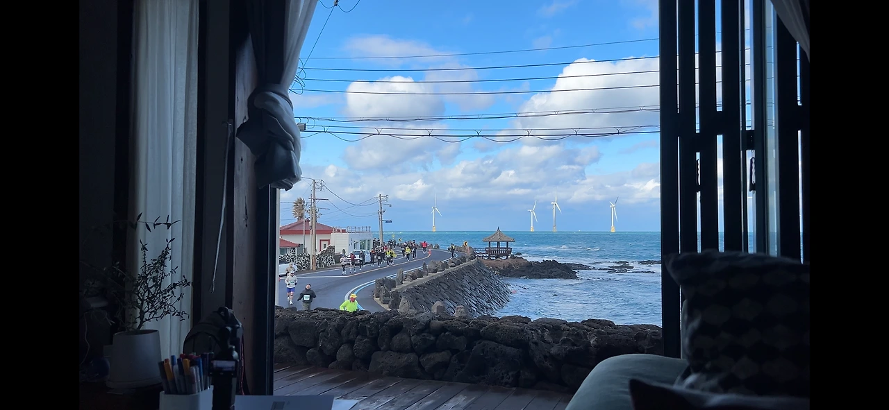 그토록 아름다운 해안도로에 승합차가 한 대 섰다. 너댓명의 인원이 내렸다. 공사장에서 입을 법한 형광 잠바를 입고 있었다. 차에서 꼬깔콘을 내리더니 도로에 배치했다. 차량을 통제하는 거였다. 얼마 지나지 않아 저 멀리서 사람들이 떼로 나타났다. 그들은 달리고 있었다. 배에 번호표를 단 채로. 마라톤이 열린 것이다. 마라톤의 코스가 숙소 바로 앞을 지났던 것이다.