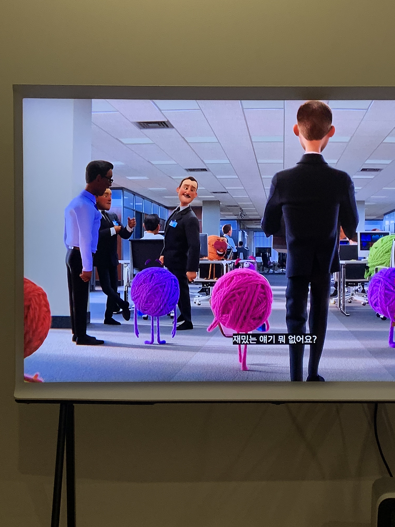 ‘인간’의 삶에 ‘털실’이 등장해 동료가 되는 이야기. 나이, 성별, 인종, 직종, 경력 등의 이질감을 이겨내고 다시 완전히 포용하는 이야기. 요즘은 이렇게 끝까지 이상적인 해피엔딩의 영화는 거의 없는 것 같다. 애니메이션이라서 혹은 픽사이기 때문에 할 수 있는 것 같기도 하고.
