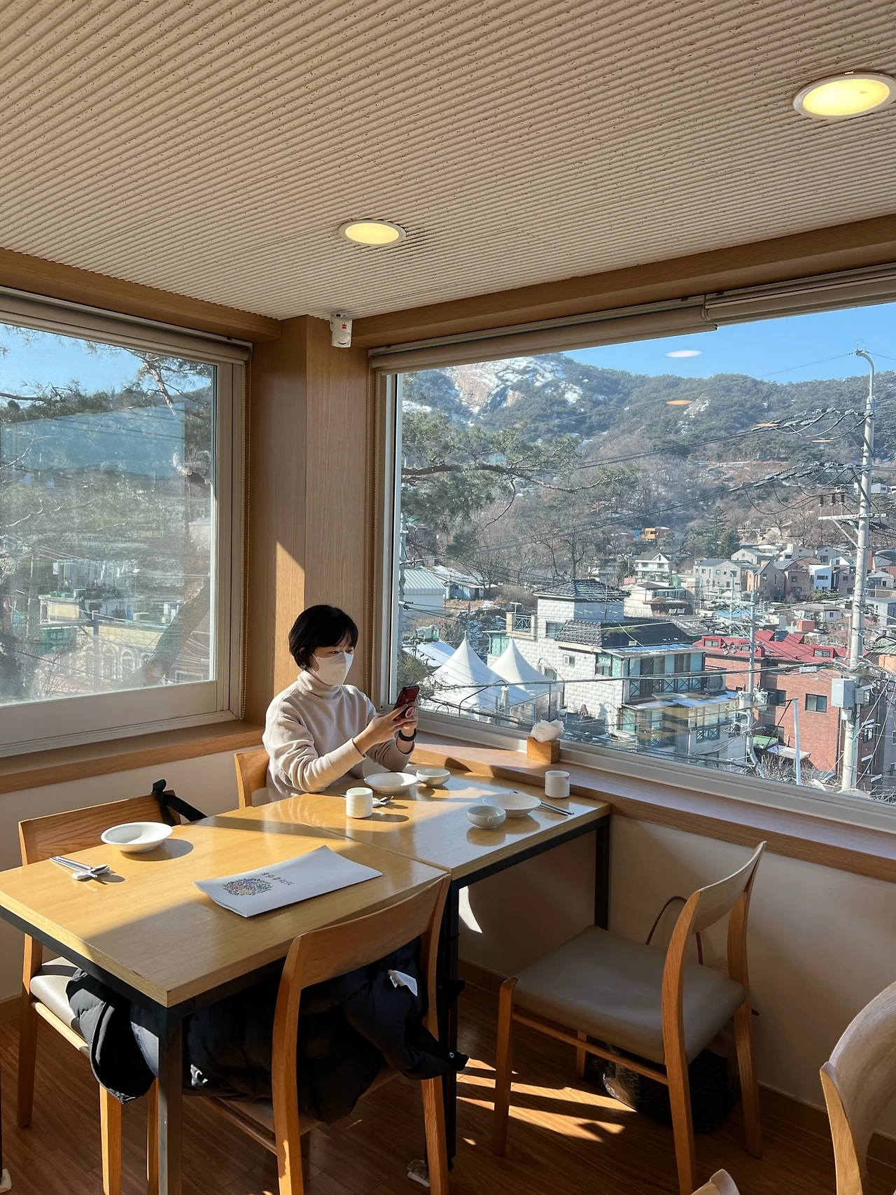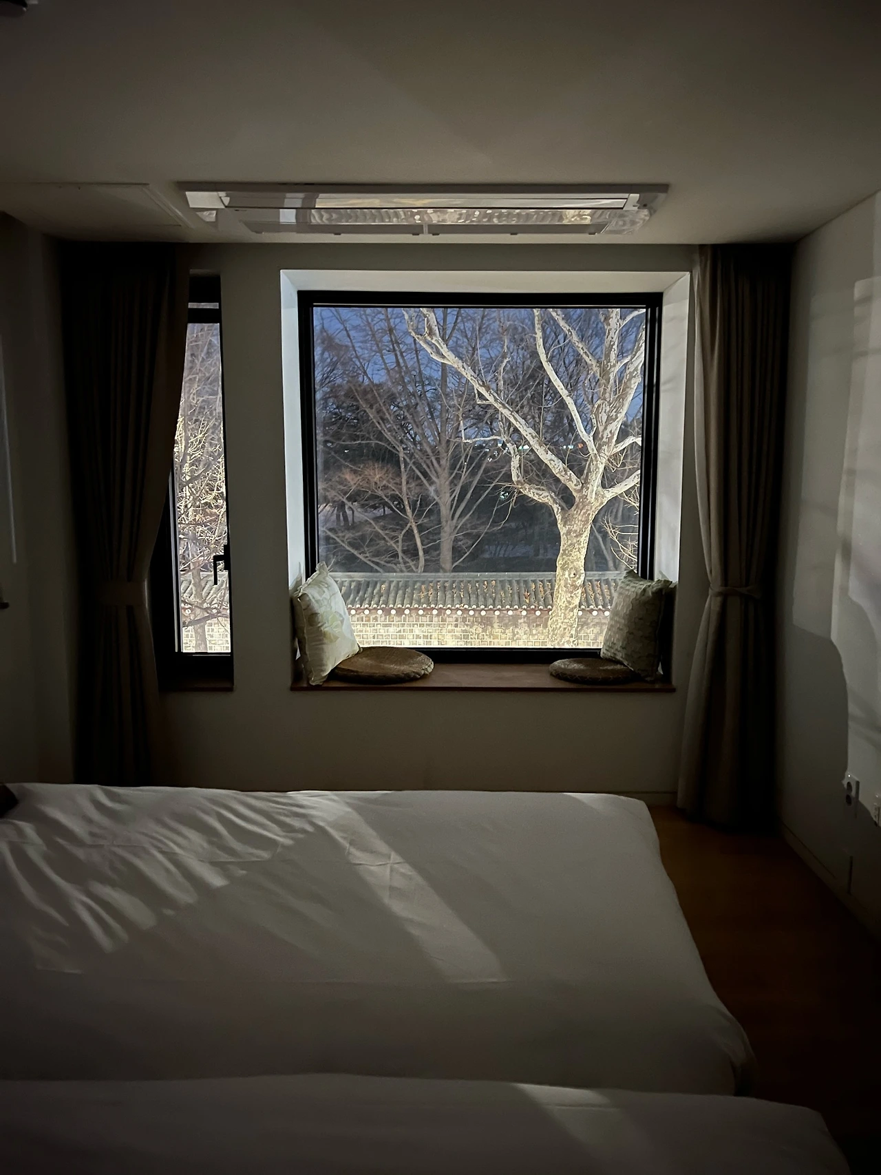 게다가 잘 모르고 예약했지만 가장 좋은 뷰를 가진 방이라는 31호에서 앞으로는 경복궁 옆으로는 청와대 사랑채와 북악산을 끼고 시간을 보냈다. 지난 연휴에 내린 눈 덕에 경복궁 경회루 앞 연못에 눈이 쌓여있고 그 덕에 그곳이 경회루라는 걸 더 쉬이 발견할 수 있었다.