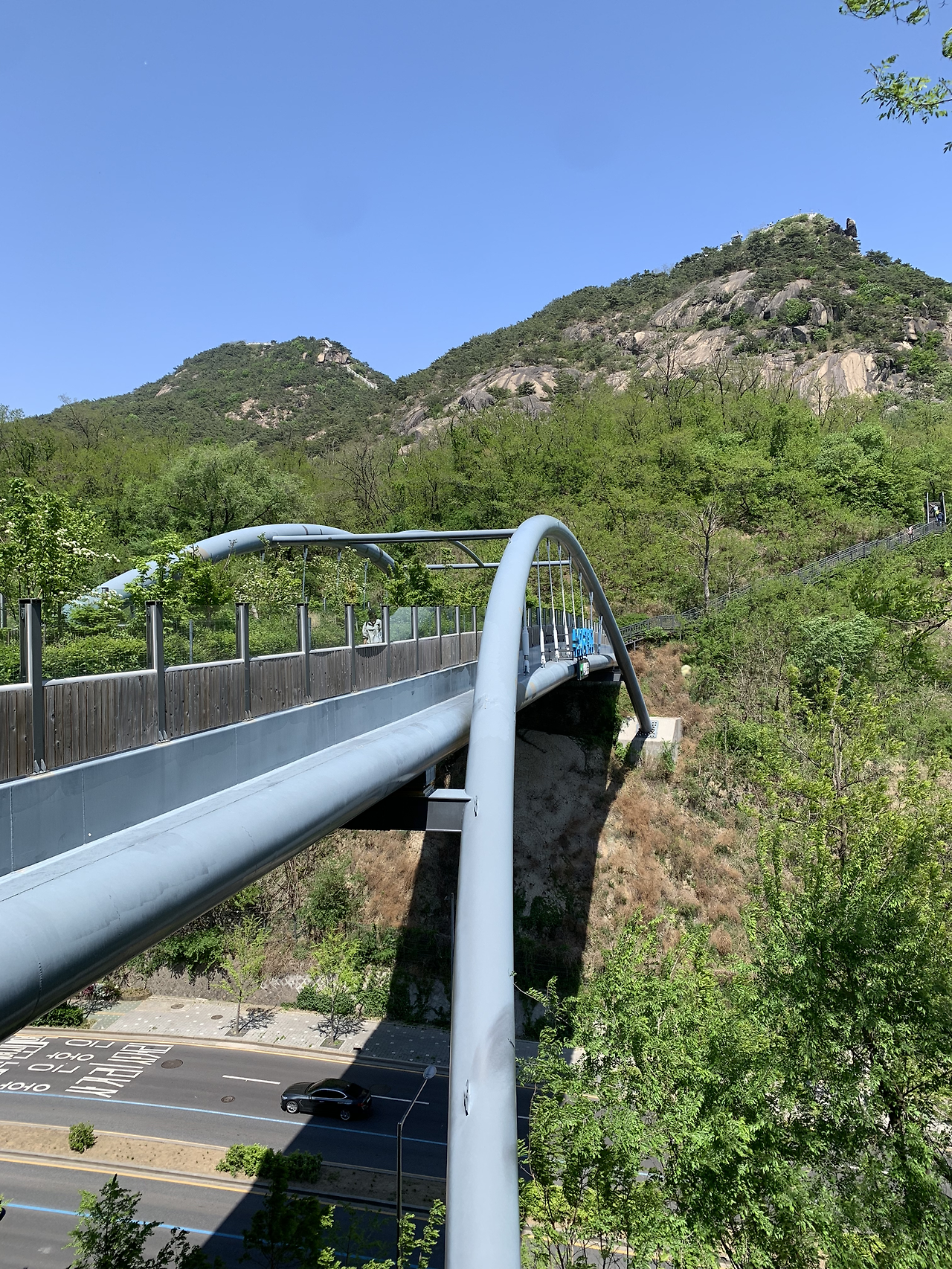 자주 가는 연희동 안산에서 하늘다리를 건너면 금방 인왕산인데, 늘 안산만 빠르게 1시간 정도 걷고 집에 돌아오곤 했다. 인왕산은 어쩐지 너무도 멀고 가파른 산세가 떠오르는 산이라서, 그리고 안산을 열심히 걷고 내려오면 내가 좋아하는 야쿠르트 여사님도 있고 커피숍과 밥집도 있고 연희동 곳곳을 탐방하기도 좋으니까. 인왕산을 가지 않을 이유가 훨씬 많았다.