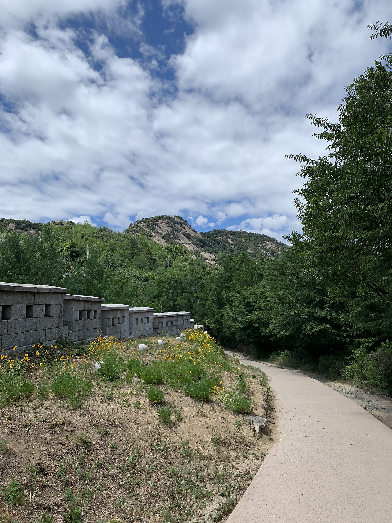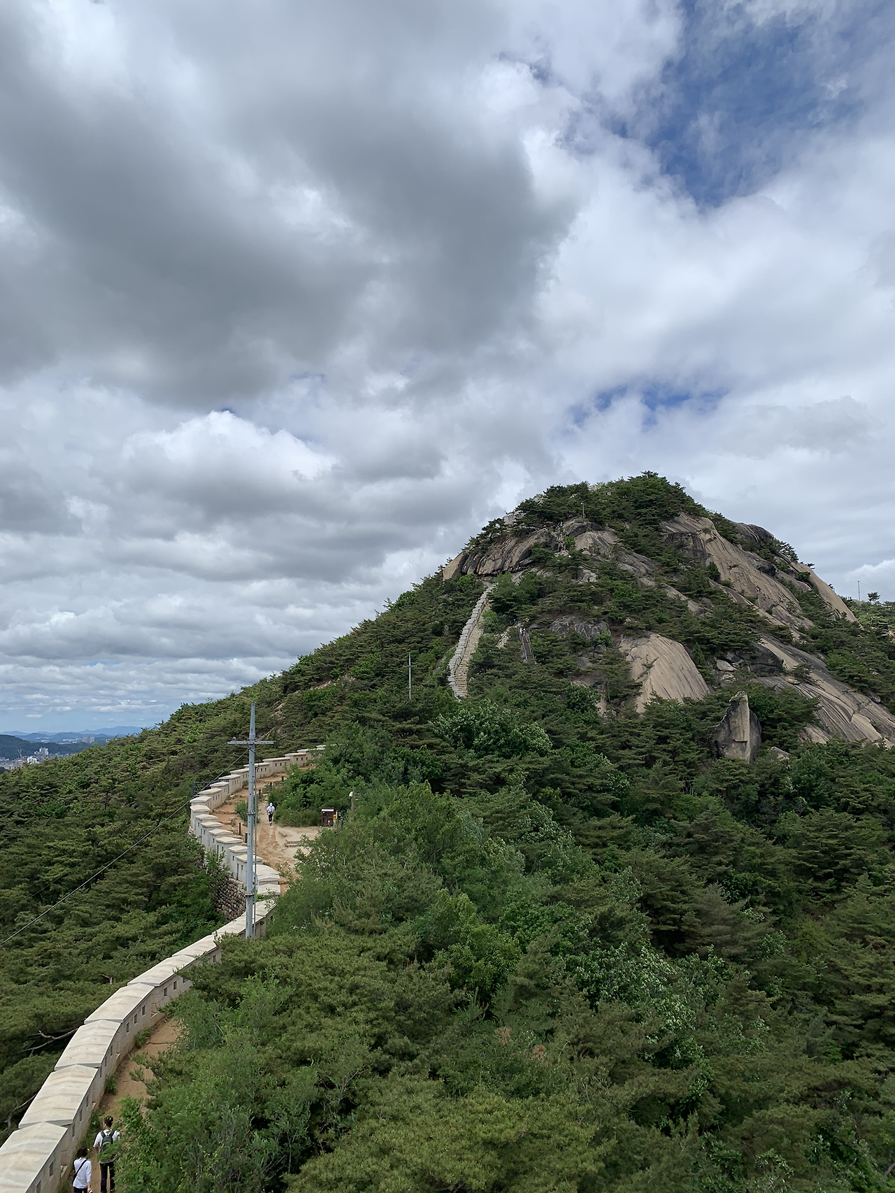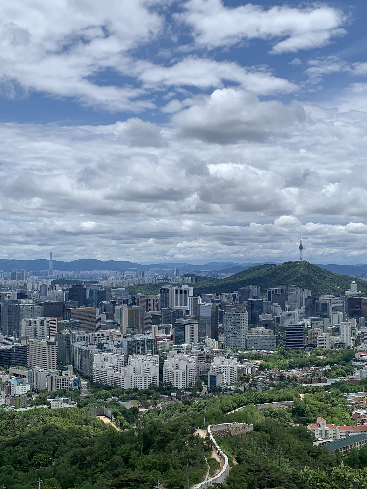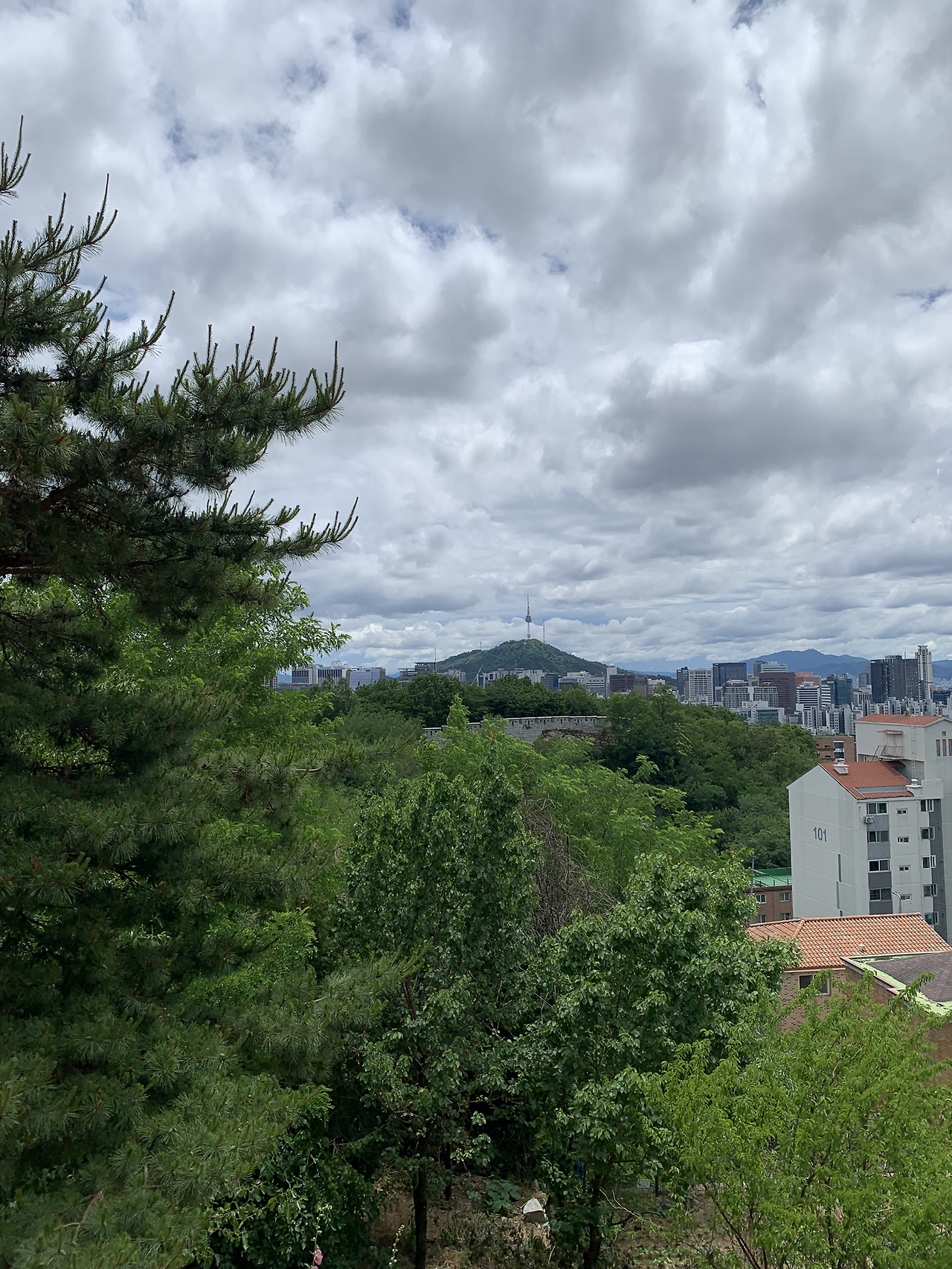 더 늦기 전에 가벼운 산책이나 가자며 길을 나섰는데 하늘이 심상치 않았다. 남편도 같은 생각이라길래 인왕산으로 차를 조금 더 몰았다. 물 한 병 가져갈 정신이 없이 부랴부랴 갔더니 정상까지는 무리여서 서울이 내려다 보이는 바위에서 풍경과 바람을 즐겼다. 경복궁의 궁궐 한 칸 한 칸이 내려다볼 수 있는 곳이 있었다니. 그뿐만 아니라 여의도부터 남산, 광화문 앞 거리와 잠실까지 빽빽하게 채워진 서울의 풍경을 볼 수 있었다.