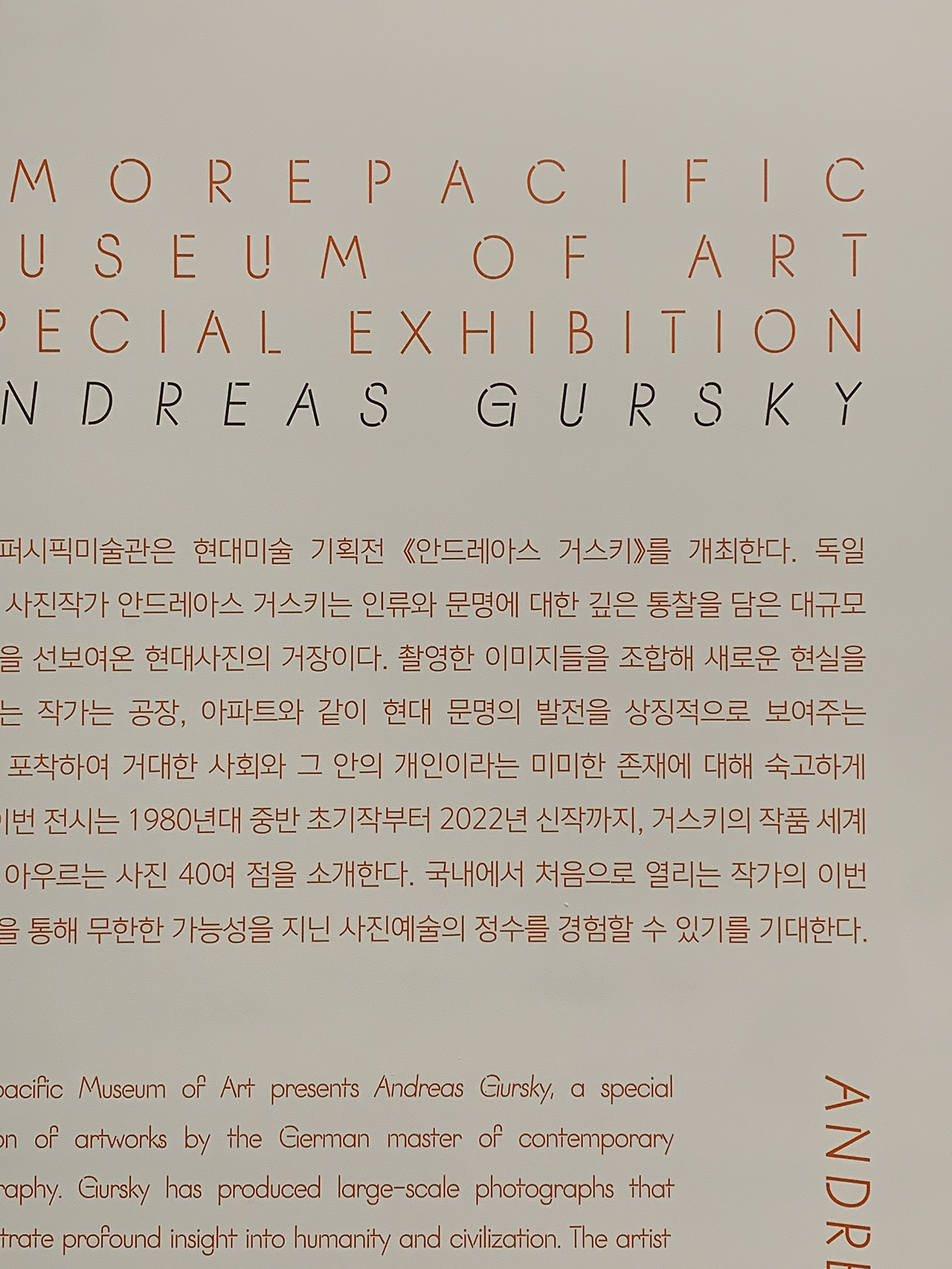 안드레아스 거스키의 사진전도 보고 왔다. 아모레 미술관의 공간 기획이 워낙 뛰어나다고 전해 들어 사진전만큼이나 기대했는데 역시나였다. 락커룸부터 작품을 여유롭게 배치할 수 있는 엄청난 규모까지. 어쩐지 이건희 컬렉션은 국중박이 아니라 아모레에 와야 하는 게 아닌가 라는 생각을 할 정도였다. 예전에 가보았던 뉴욕이나 파리의 유명한 미술관들의 작품 배치처럼 아모레 역시 공간과 공간 사이의 통로에서 보이는 작품의 조각마저 참 멋지게 정렬해두었다. 이제 아모레에서 기획하는 모든 전시를 제일 우선하여 찾아봐야지 라는 마음마저 들었던 경험.