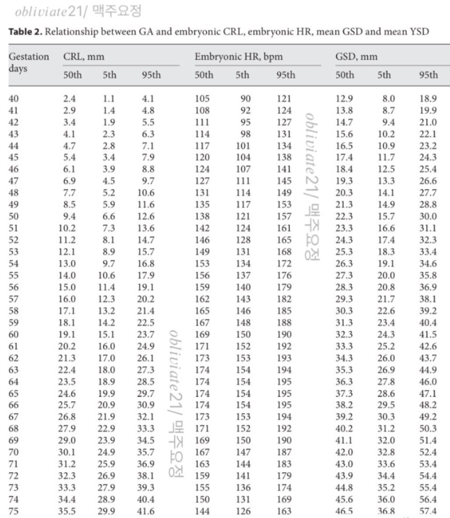 다행히 주수대비 (8주 2일 기준 56일+2일) 아기의 머리부터 엉덩이까지 길이(CRL; 아기 크기)와 심박수(HR) 그리고 매번 재지 않지만 아기집크기(GSD)도 모두 정상이었다. 정상이라니.