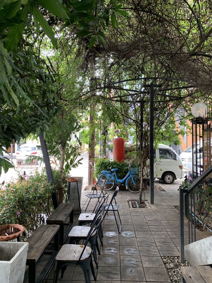 비가 한 두 방울 떨어지는 수영장을 바라보며 아침을 먹었다. 저 멀리 깊은 산속 구름이 지나가는 것이 훤히 보였다. 예스러운 음악이 나오고 식탁 나무 사이 개미가 지나가는 곳에서 첫 번째 아침을 맞이했다. 치앙마이는 태국의 북부에 속해 덜 덥고 덜 습할 뿐 아니라 커피콩 산지와 가까워 괜찮은 커피숍도 많다 했다.