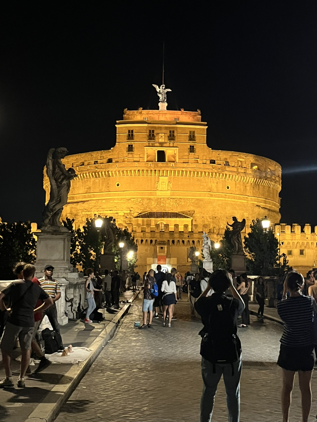 더위와 맞서 싸울 의지가 없는 우리는 콜로세움, 포로 로마노, 성천사성을 모두 야경 투어로 걸으면서 구경했다. 일요일 저녁이라 지하철도 버스도 한산한 편이었고 콜로세움 앞을 쭉 잇고 있는 황제의 길도 차없는 도로로 운영 중이라 여유로웠다.