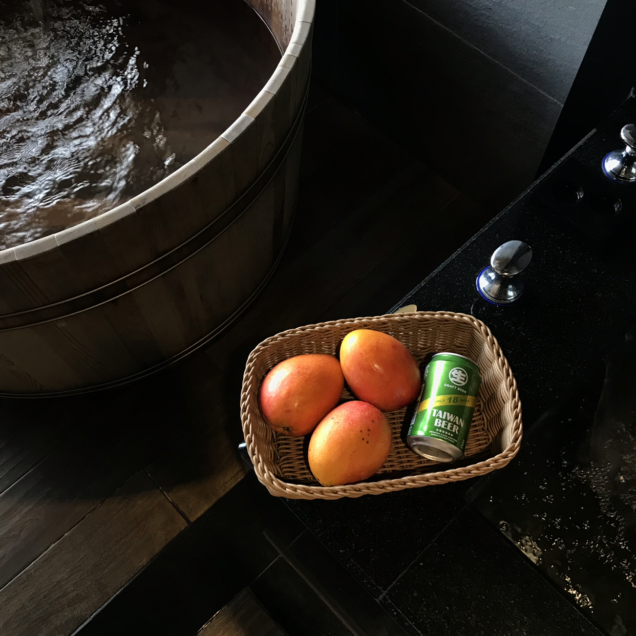 점심보다 조금 이른 시간으로 예약하니 할인을 받아 90분에 우리 돈 3만원 정도가 나왔다. 2인용 프라이빗 룸에 냉온탕이 각각 있고 간단히 옷을 갈아 입고 짐을 보관할 수 있는 공간이 있었다. 미리 사 둔 망고에 맥주까지 곁들이니 이런 호사가 따로 없었다.
