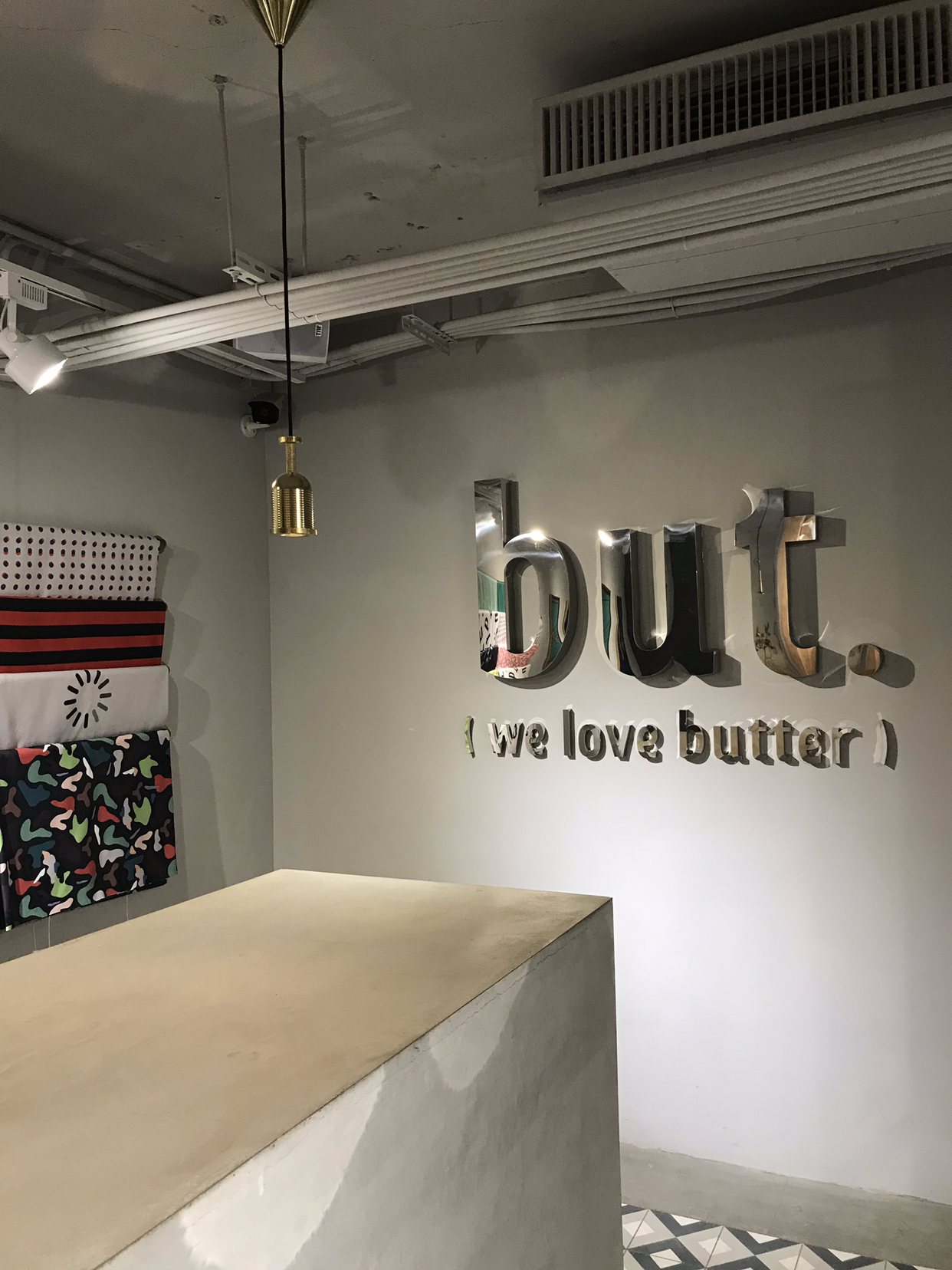 그렇게 들러 본 쿠키살롱 BUT. we love butter. 처음에는 동네가 너무도 고상하고 여유로워 이런 곳에 있는 쿠키집이라면 분명 예사롭지 않을 거라고 생각했고, 그 예상은 정말로 적중했다. 입구는 영화 킹스맨의 테일러샵을 닮아 독특했고 살롱 내부는 몹시도 감각적으로 꾸며져 있었다.