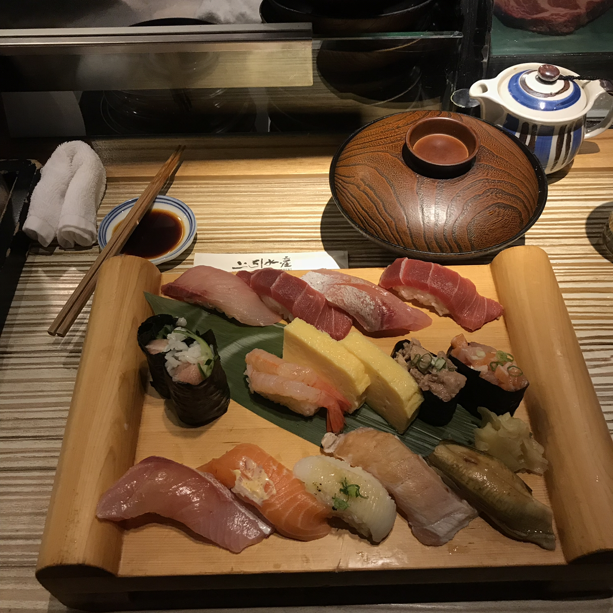 상인수산에는 스시 바와 샤브샤브 그리고 BBQ 식당이 있었는데 스시 바는 스탠딩, 나머지 두 곳은 테이블에서 식사를 즐길 수 있다. 스시 바의 디럭스 스시 세트가 우리 돈 25,000원 정도로 싼 가격은 아니었지만 나에게는 이미 맛집. 그리고 장국이 예술. 맥주나 와인을 곁들여도 좋다.
