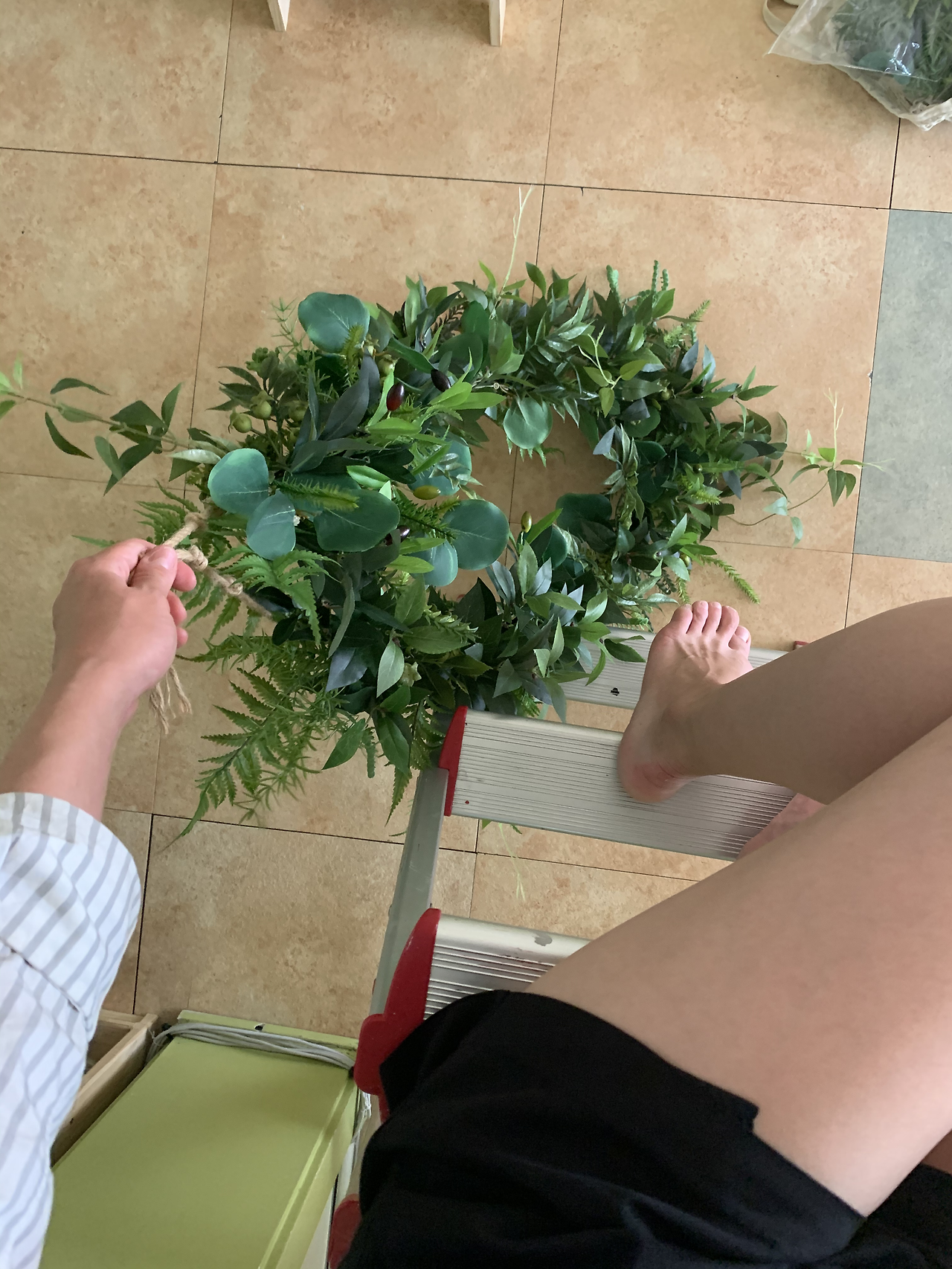 그 이후에도 몇 차례 실크 플라워 작업을 했다. 생화로 혼자 작업했더라면 엄두도 못 냈을 대형 갈란드 작업.
