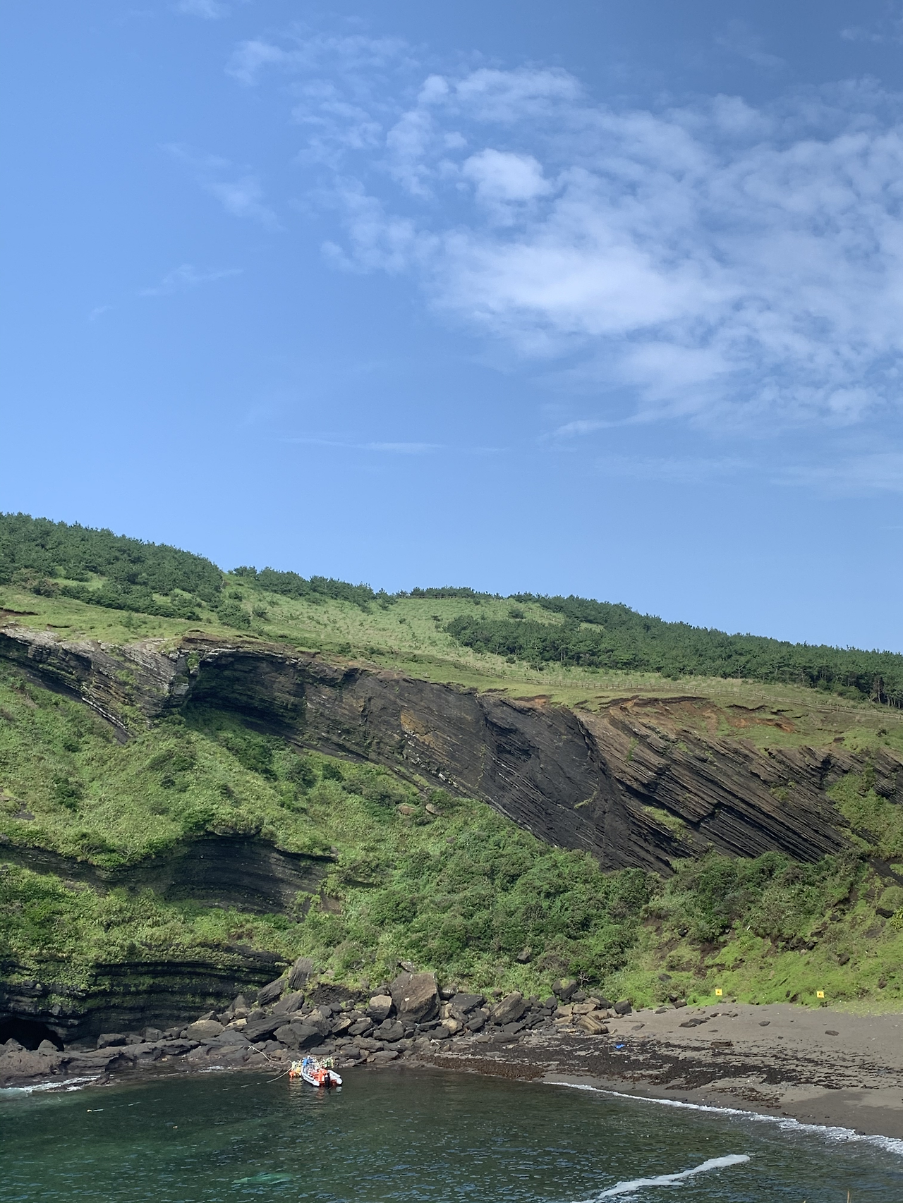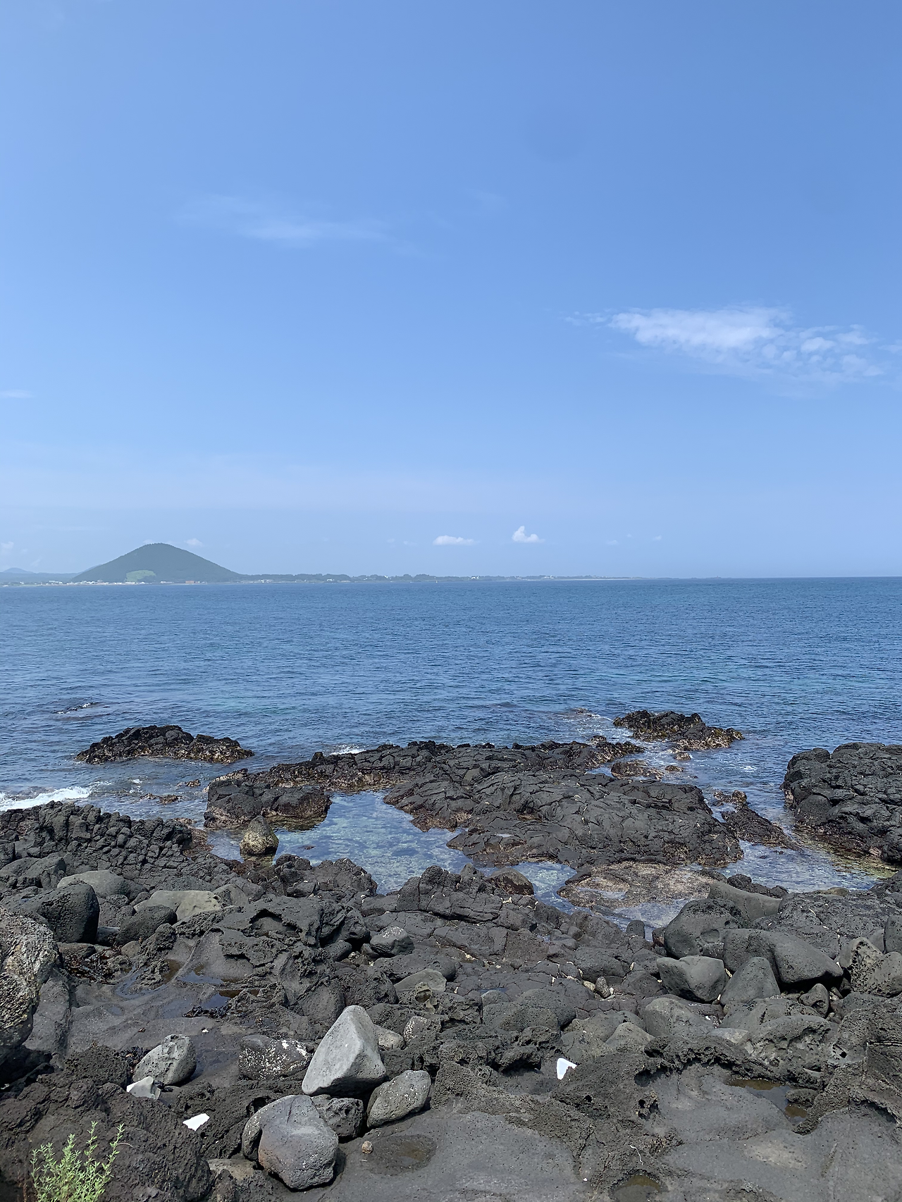 3시간에 걸쳐 쉬엄쉬엄 올레길을 걷고 매시 정각 하고수동항에서 출발하는 배를 타고 제주로 나왔다. 배를 기다리는 동안 서빈백사와 이어지는 작은 바닷가에 앉아 더위를 식혔다. 그 사이 관광객들이 하나 둘 우도로 들어왔다.