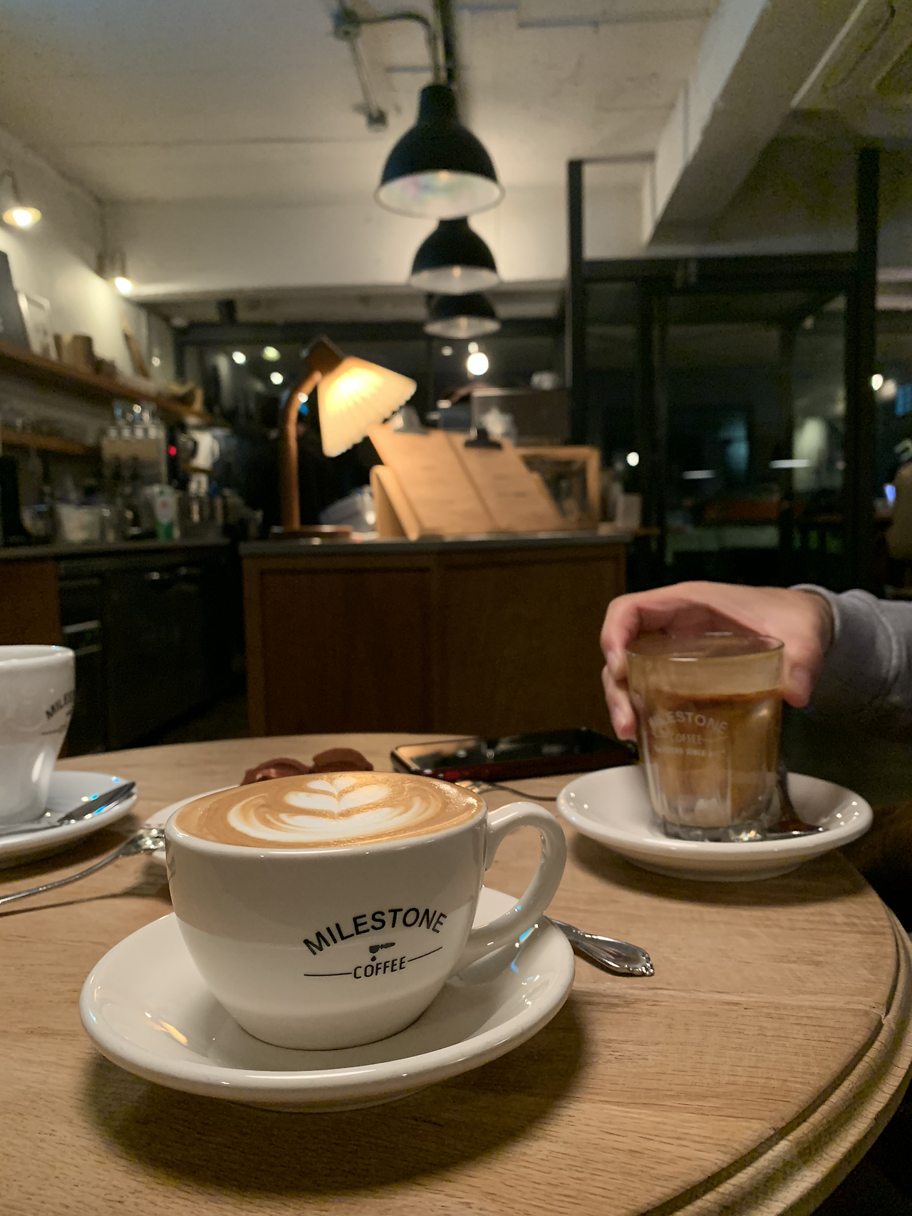 최근 마신 커피 중 가장 맛있게 마신 커피이자 디저트는 신사동 마일스톤 커피였다. 플랫화이트와 티라미수의 조합 최소 척척박사 수준. 과거 테일러 커피의 크림 모카와 같이 직접 손으로 쳐서 바로 커피 위에 올려주는 아인슈페너가 가장 인기 있다고. 그 크림이 고스란히 올라간 티라미수를 맛 보니 다음엔 꼭 아인슈페너를 마셔봐야 할 것 같다. 펫 프렌들리 커피숍이라 평일 저녁에도 강아지가 의자에 다소곳하게 앉아 밤 커피를 즐겼다.