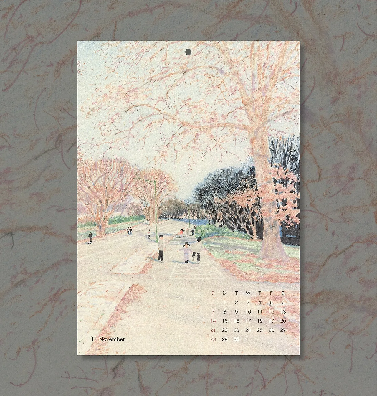 이규태 작가의 달력을 받아 박스를 열어 보니 종이 포장 안에 서류봉투를 닮은 종이 박스에 달력이 들어가 있었다. 포장지 뒷면은 아일렛 단추로 되어 있어 선물용으로도 좋아 보였다. 같이 딸려 온 미니 달력은 안방 램프 곁에 두었다 달력의 작은 그림이 있는 미니 달력. 달력 속 날짜들이 전혀 어색하지 않고 새삼 2021년이 정말 코 앞인 것 같다.