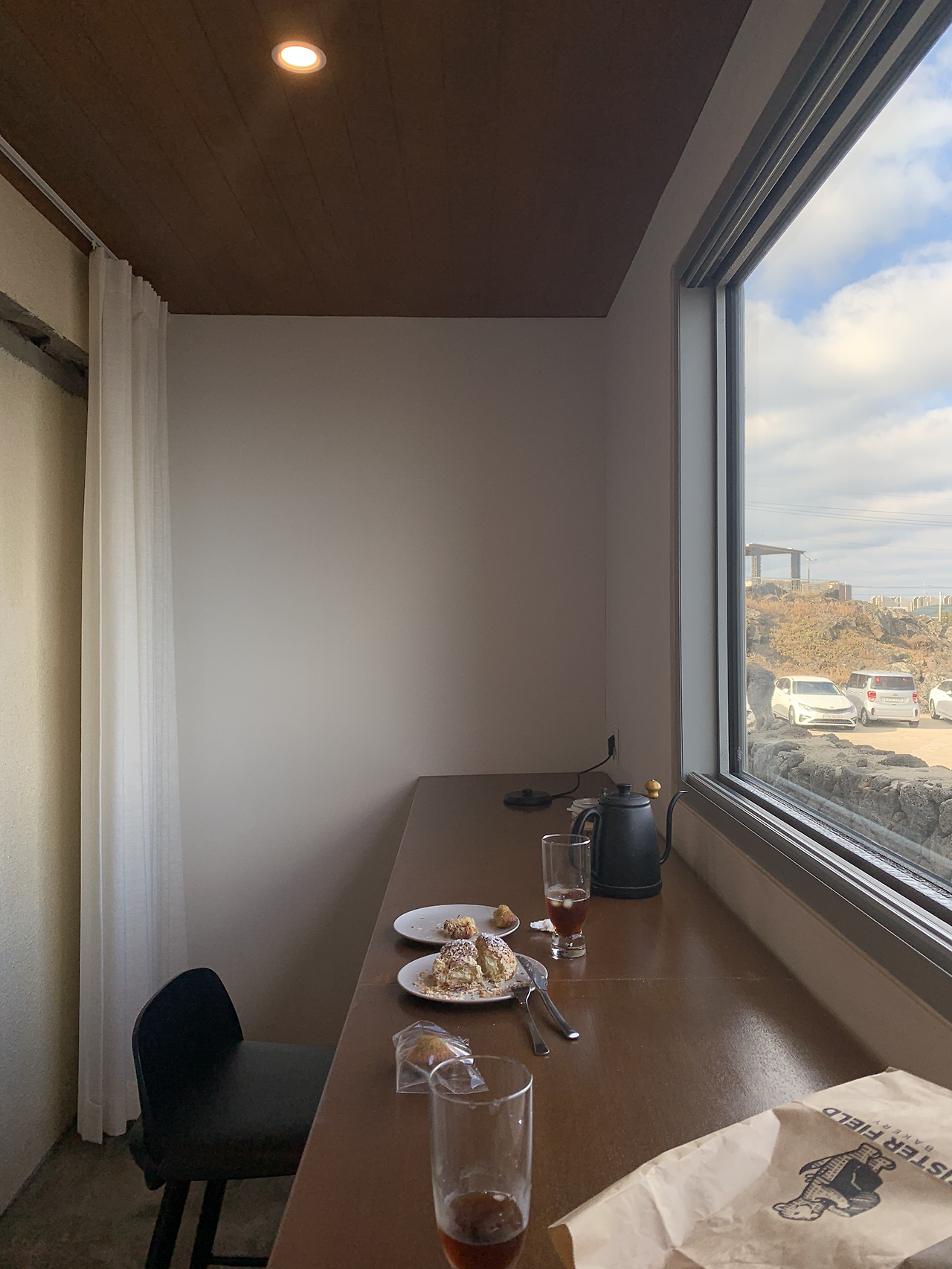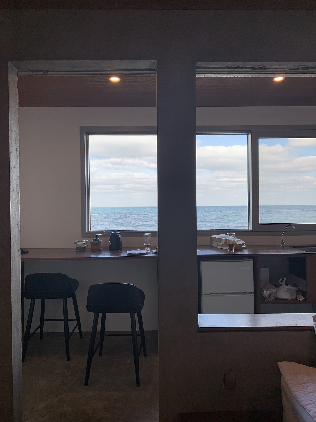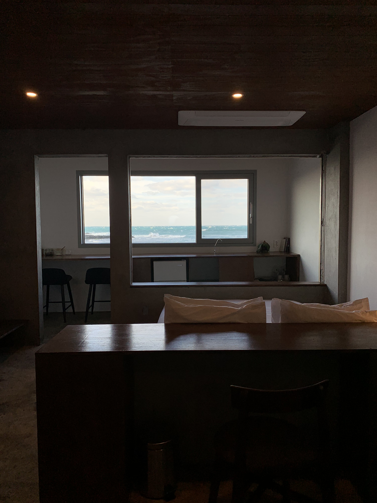 여행은 짧았지만 여운은 긴 법. 등산을 마치고 들어간 숙소의 침대 발 밑에는 한림 바닷가가 가로로 길게 보이는 창이 있었다. 그 창을 바라보면서 딱 하룻밤만 더 머물고 싶다고 생각했다. 혼자서라도 언제고 다시 돌아와 하루 종일 창가를 바라보고 싶다는 마음이 들었다.
