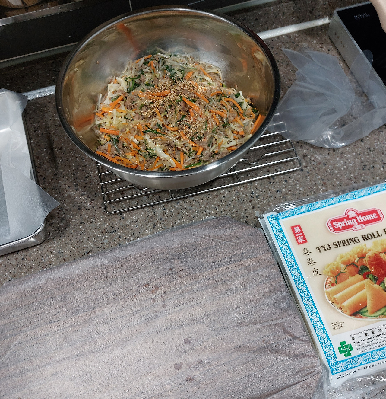 사실 우리가 흔히 먹던 냉동 스프링롤은 애피타이저나 사이드 메뉴로 다진 야채와 당면, 고기가 조금 들어있는 기름에 튀긴 만두 느낌이지만, 엄마가 배운 레시피는 속이 조금 더 풍성하고, 기름에 튀기지 않아서 담백해서 한 끼 식사로도 손색이 없단다. 샐러드와도 잘 어울리고 추운 날 어묵 국물과 곁들여 먹어도 맛있는 많이 만들어 놓고 냉동실에 보관했다가 전자레인지나 오븐에 살짝 데워 먹어도 되는 오늘의 레시피, 이제 출발!!!