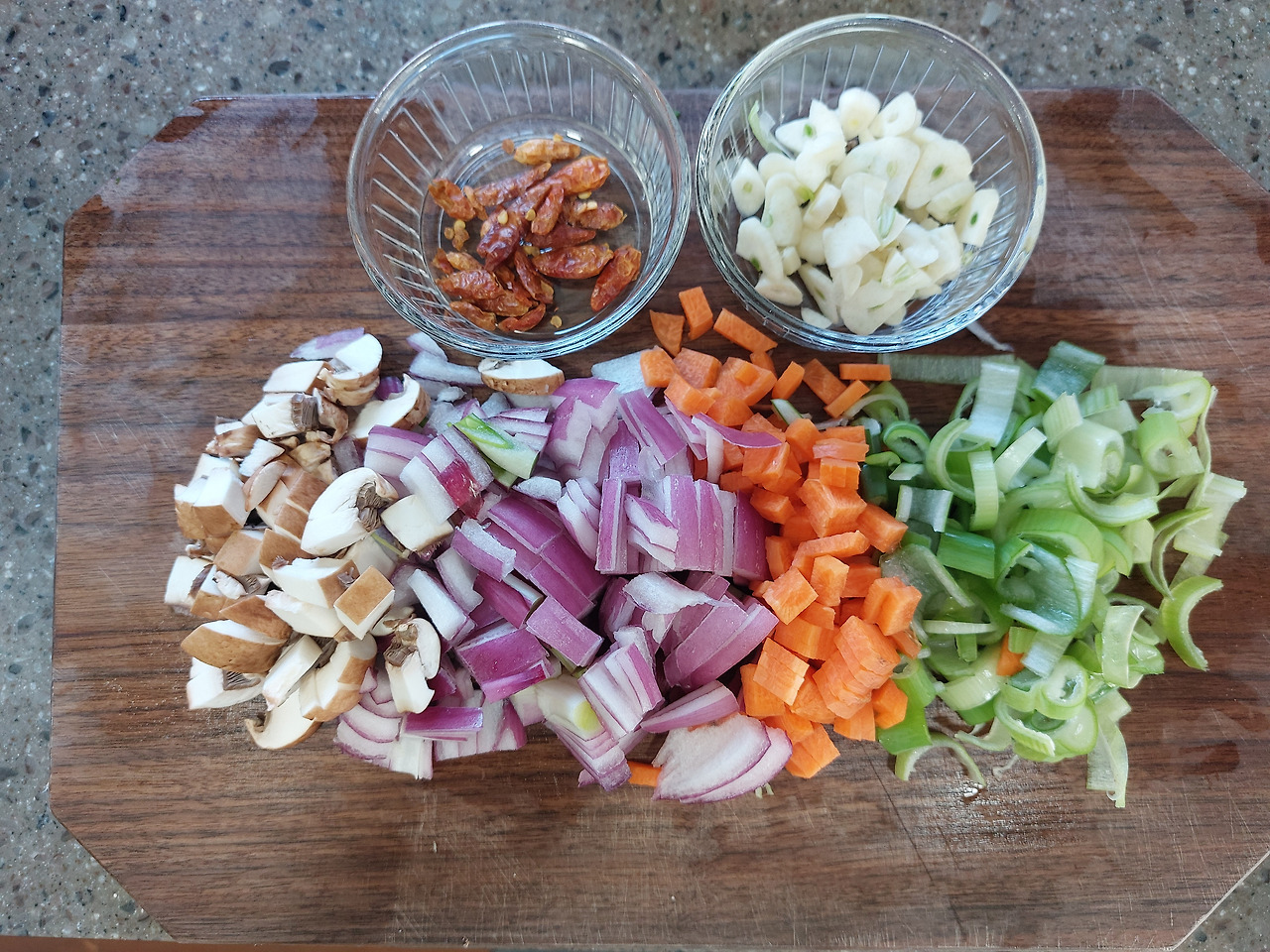 그래, 그럼 깐풍새우는 드시겠다? 중화요리 먹을 때 요리메뉴 하나 시킬까 말까 매우 고민하게 되는 요즘 물가. 그래, 이번에도 내가 만들어주겠어, 깐풍새우. 다행히 집에 냉동새우가 있었지. 생물 새우면 좋겠지만, 새우 껍질 까고 내장 빼내고 밑준비가 귀찮다면 냉동새우도 괜찮아. 칵테일 새우도 좋고. (오늘 엄마가 사용한 블랙타이거 새우는 크기가 작아서 한입에 먹기에는 딱 좋다.) 일단 새우만 있으면 나머지 야채는 냉장고에 있는 것들로 자유롭게 사용하면 돼. 하지만 깐풍기의 풍미를 올려줄 대파와 마늘, 페페론치노는 늘 상비 해두면 어느 요리에든 유용하게 쓰이니 꼭 재고(?)를 확인하도록.