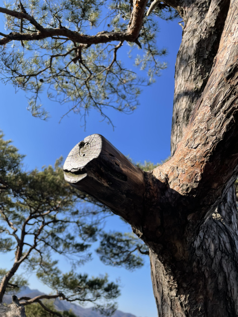 내려가는 길에 등산객이 하도 짚어 반들 해진 나뭇가지를 만났다. 보드라운 손이 사포 역할을 했다는 것이 놀랍다. 괜스레 나도 한번 쓰다듬고 지나가 본다. 가끔 이런 포인트에서 이상한 감동을 느끼곤 한다. 그 많은 사람들이 다녀갈동안 나무는 묵묵히 그 자리에 있었다는 것이 고마우면서도 찡하다.