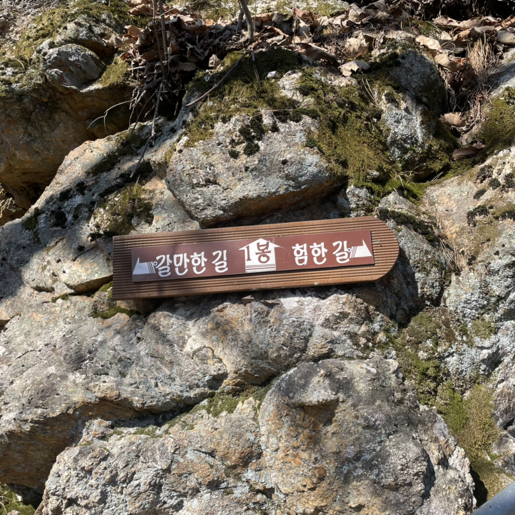 이렇게 아찔한 냉탕과 웅장한 온탕을 번갈아 경험하다 보면 마지막 냉탕이 나온다. 3봉 정상석은 외길과 돌길의 조합이라 가까이 가려면 용기가 필요하다. 나는 시조새같이 소리를 지르며 정상석에 다녀왔다. 바로 뒤에 오던 비슷한 또래의 남성분은 무섭다며 인증사진을 패스했다. 그럴 수 있다는 생각과 함께 나 스스로를 '겁은 많지만 독한 사람'으로 정의하게 되었다.
