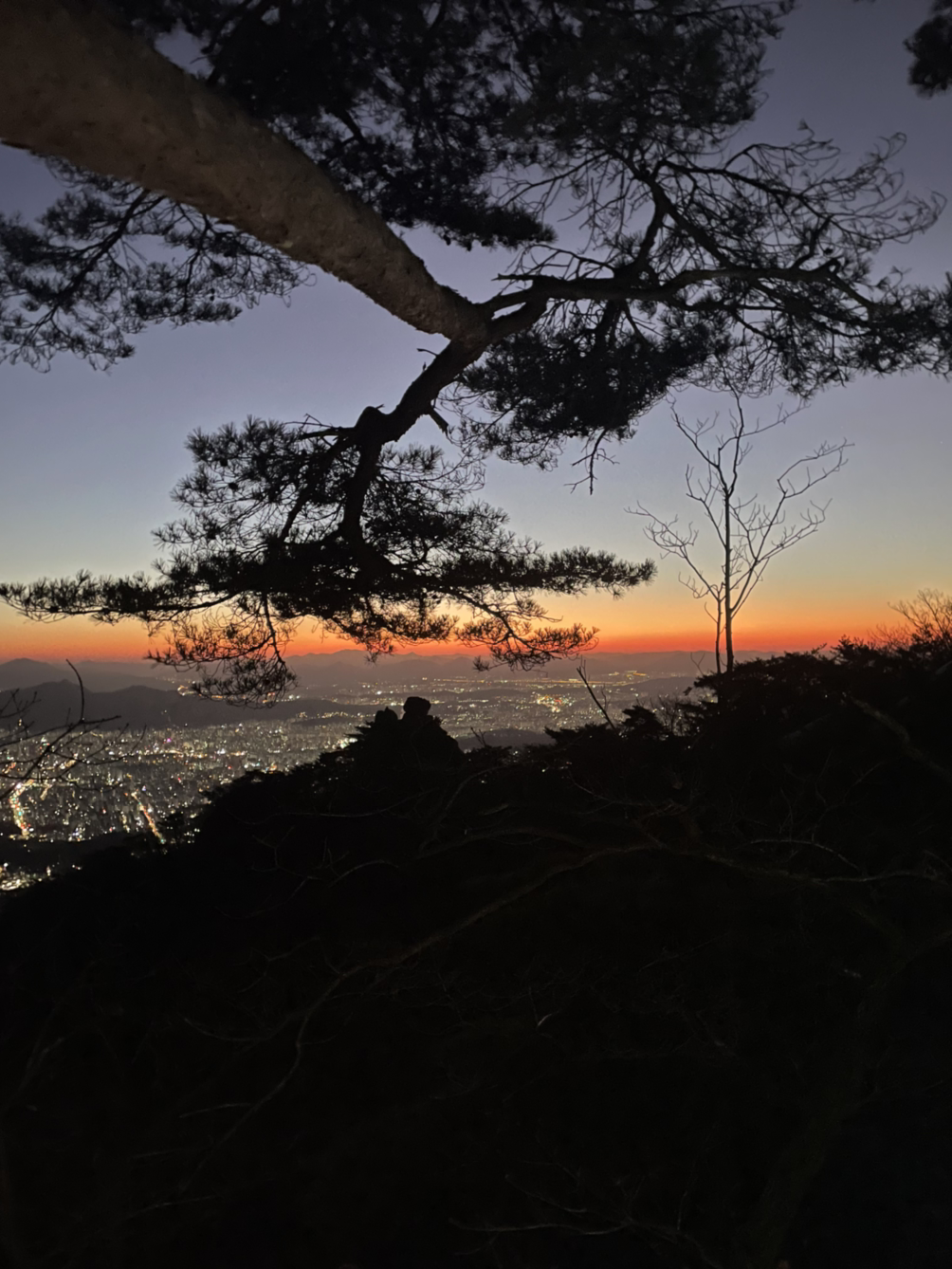 깜깜한 밤이었다. 산 중턱쯤 나무계단을 오를 때, 고개를 젖혀 하늘을 바라보니 쏟아질 것 같은 별들이 있었다. 서울에서 20년 넘게 살았지만 별을 볼 수 있다는 생각은 하지 않았다. 어쩌면 서울을 바쁘고 황폐한 도시로만 대했을지도 모른다. 일출시간까지 여유가 있었기에 시시각각 변하는 하늘을 감상하며 조금은 천천히 올라갔다. 너무 빠르게 올라도 정상에서 해를 기다리며 오들오들 떨 것이었다.