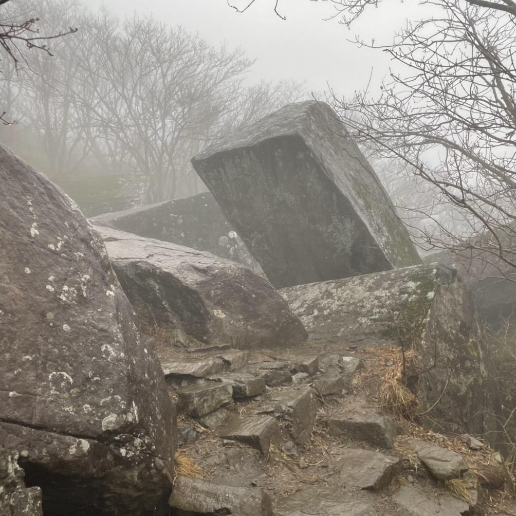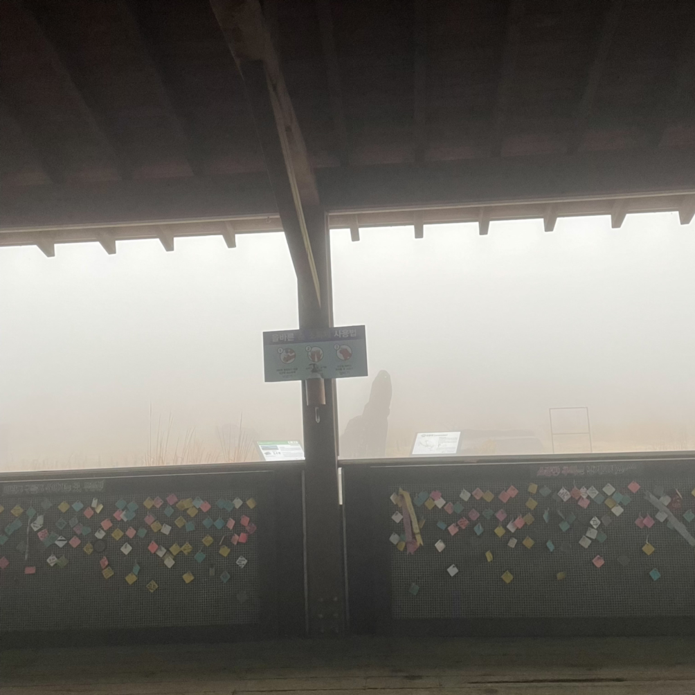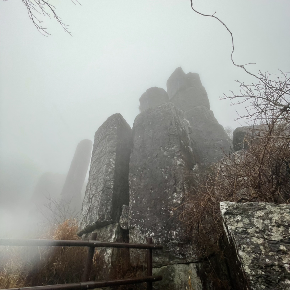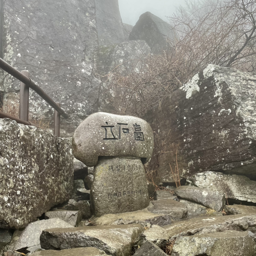 입석대까지는 정말 대화 없이 묵묵히 올랐다. 비에 젖은 옷이 무거워서 손으로 듬성듬성 짜며 올라갔다. 무거워진 몸으로 미끄럽고 질퍽거리는 산길을 오르는 것은 쉬운 일이 아니었다. 짙은 운무에 시야도 확보되지 않아 정말 최악의 상황이었던 것 같다. 보고 싶었던 주상절리는 뿌연 윤곽만 보고 지나왔다.