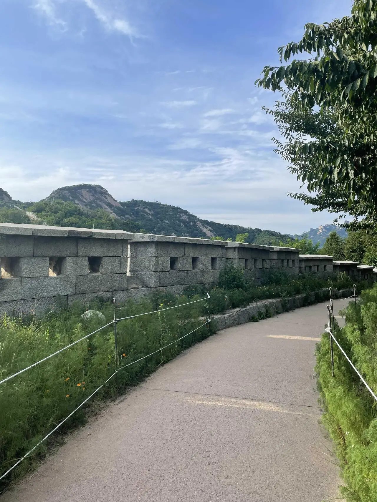 인왕산 풍경을 완성하는 건 돌이었다. 끝없이 펼쳐진 성곽 돌길이 시멘트 건물과 초록 숲의 가교 역할을 하며 탄성이 절로 나오는 풍경을 만들어낸다. 게다가 날씨에 따라 기분이 오락가락하는 나에게 머리끝까지 신나버리는 날씨가 주어졌다. '역시! 날씨요정도 내 첫 산행을 응원하는구나'라고 내 마음대로 생각했다. '돌도 이렇게 아름다울 수 있구나'를 느낀 날.