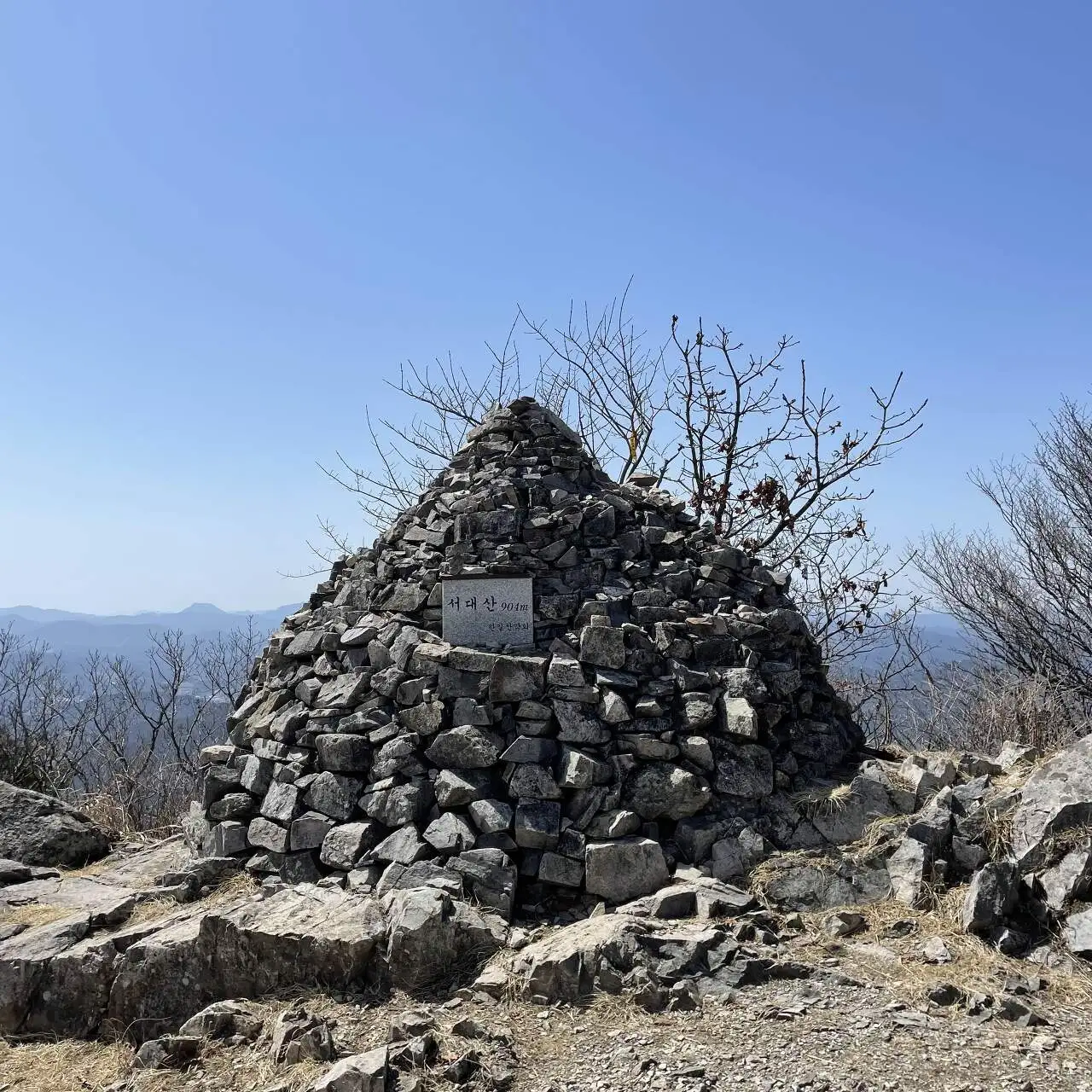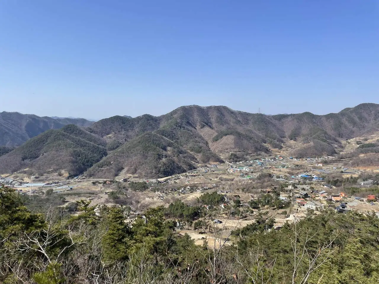 2022년 3월 28일 월요일, 대전 여행의 첫 일정으로 개중 제일 높은 산을 선택했다. 서대산의 장점은 조금만 올라가도 마을풍경이 한눈에 보인다는 것이다. 개덕사가 해발 300m에 자리하고 있기 때문에 900m 산이지만 실제로는 600m만 오르면 정상을 만난다. 서대산의 단점은 조금만 더 올라가면 풍경이 사라진다는 것이다. 그리고 풍경이 나오더라도 아까 본 철지붕, 비닐하우스 풍경이다. 그래도 맥이 풀릴 만큼 지루한 풍경은 아니다.